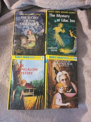 Lot of 4 Nancy Drew mystery books. Includes "The Mystery at Lilac Inn" and "The Secret of the Old Clock". Two books are vintage and show some age, while the two newer ones are practically new, maybe opened once. Sold as is. Feel free to message if you have any questions!