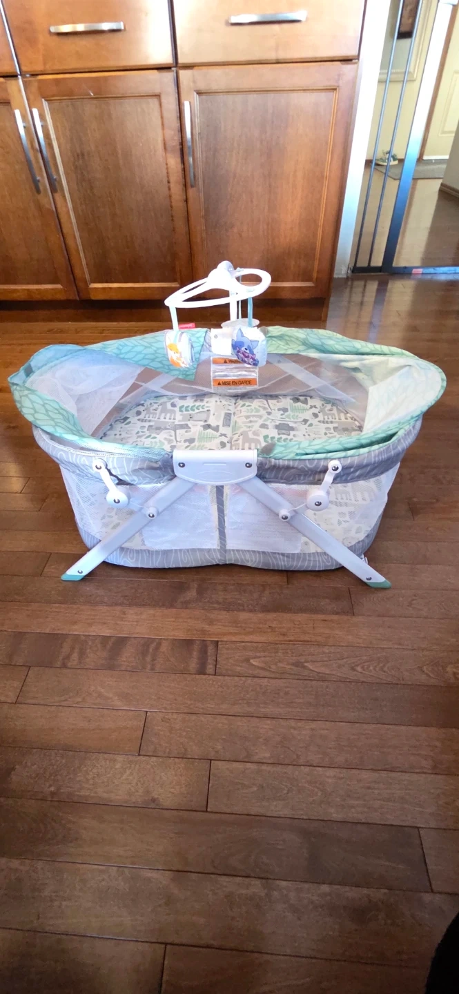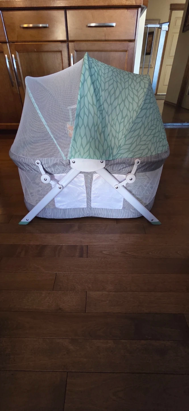Designed for babies birth to 9 months, the Sweet Dreams Fold & Go Bassinet by Infantino is easy to set up and perfect for travel. Its cute koala design, mesh sides, and full canopy provide visibility, shade, and bug protection. With three hanging toys to entertain your little one. Compact and foldable for easy storage.
