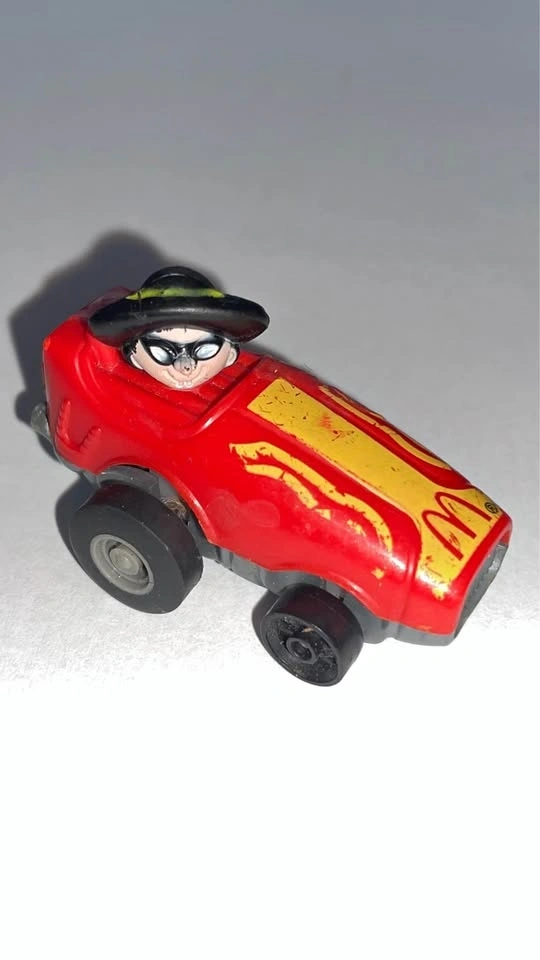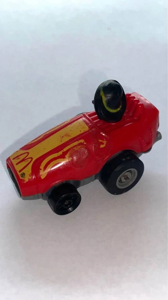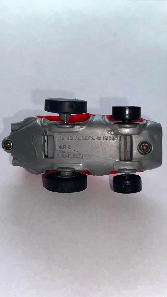 This car is from one of the most iconic McDonald's promotions of the 1980s, where they collaborated with ERTL. The body of this car is made of die-cast metal. It is part of a four-vehicle series that included Ronald McDonald, Grimace, and Birdie.