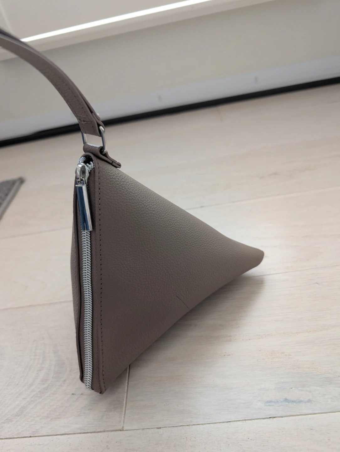 Grey Faux Leather Triangle Clutch Wristlet