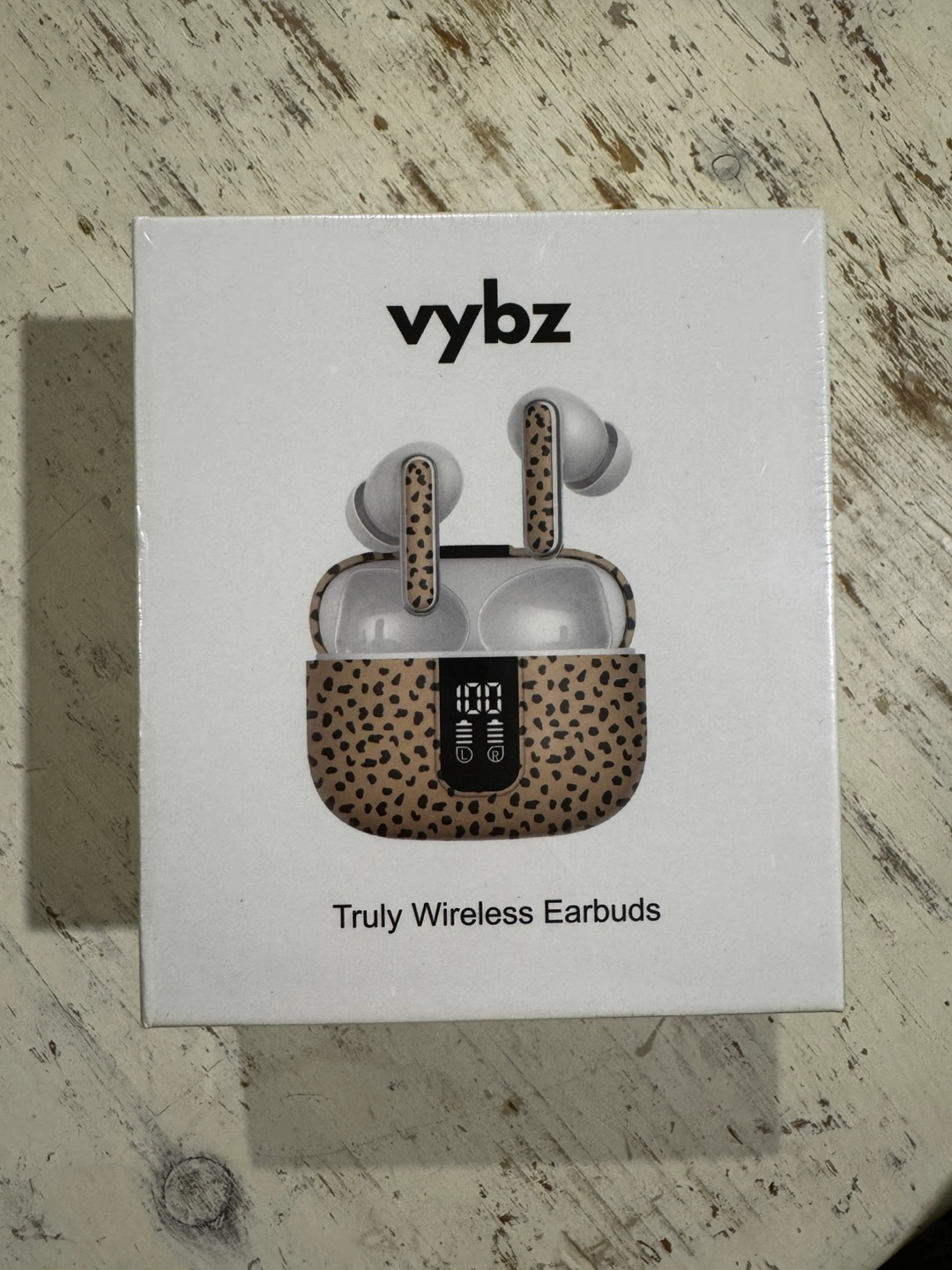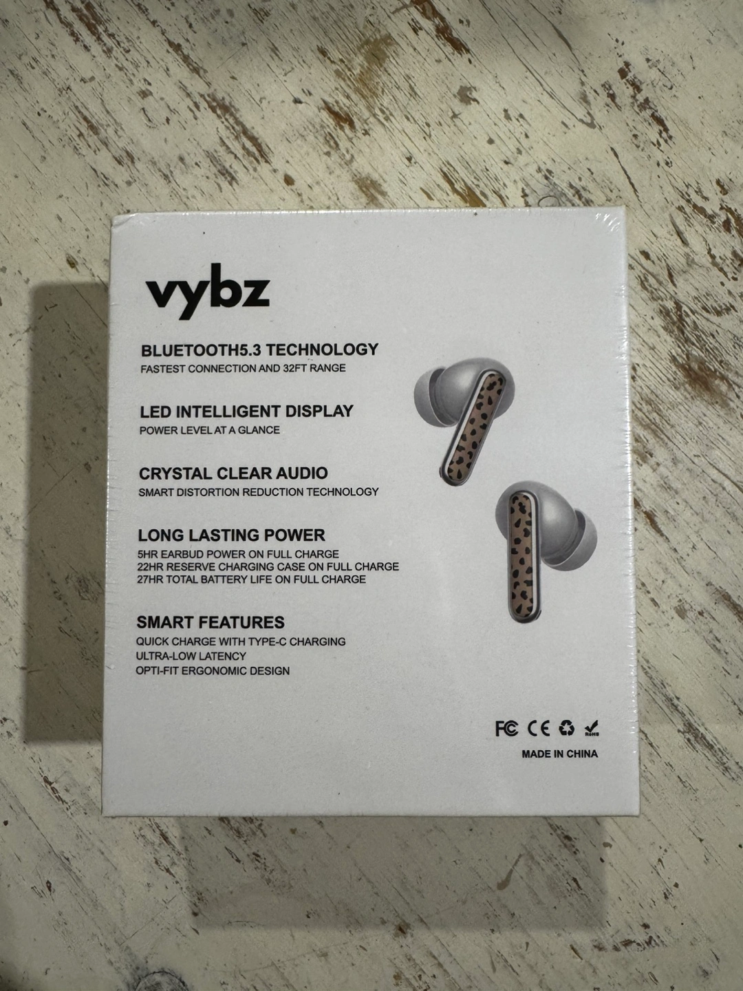 Brand new, unopened box of Vybz truly wireless earbuds.