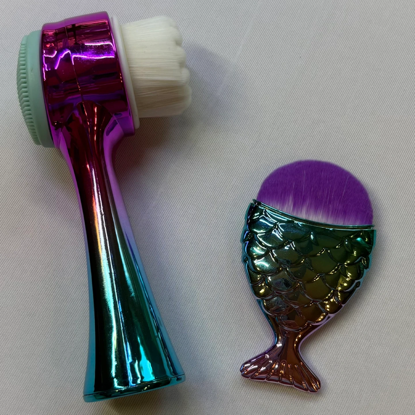 Add a touch of glam to your beauty routine with this stunning 2-piece iridescent brush set! Includes a dual-head facial cleansing brush with ultra-soft bristles on one side and a gentle silicone exfoliating pad on the other—perfect for deep cleaning and achieving smoother, glowing skin. The set also features a mermaid tail foundation brush with dense, soft bristles ideal for blending liquid or powder foundation flawlessly. Features: New without tags! Brand: Zoe Beauty Supply Includes: Dual-action cleansing brush for gentle exfoliation and deep clean Also Includes: Mermaid tail makeup brush with soft, high-density bristles Color: Iridescent metallic handles in pink, teal, and purple tones Perfect for travel, gifting, or daily skincare routines Condition: New, unused See photos for measurements. Flaws: None noted Cross posted. Keywords: makeup brush set, beauty tools, iridescent brush, mermaid foundation brush, cleansing brush, skincare brush, facial exfoliating brush, makeup accessories, beauty essentials, glam brush set, rainbow makeup brush Winnipeg - Pick up only (Located 2 blocks west of Polo Park). Shipping options available through other platforms message me for details.