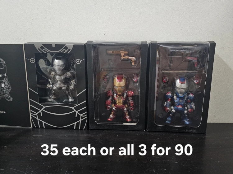 meetup at warden and bamburgh circle mcdonalds Three Iron Man action figures are brand new but does have damages to the box. Each figure includes accessories. $35 each or all 3 for $90