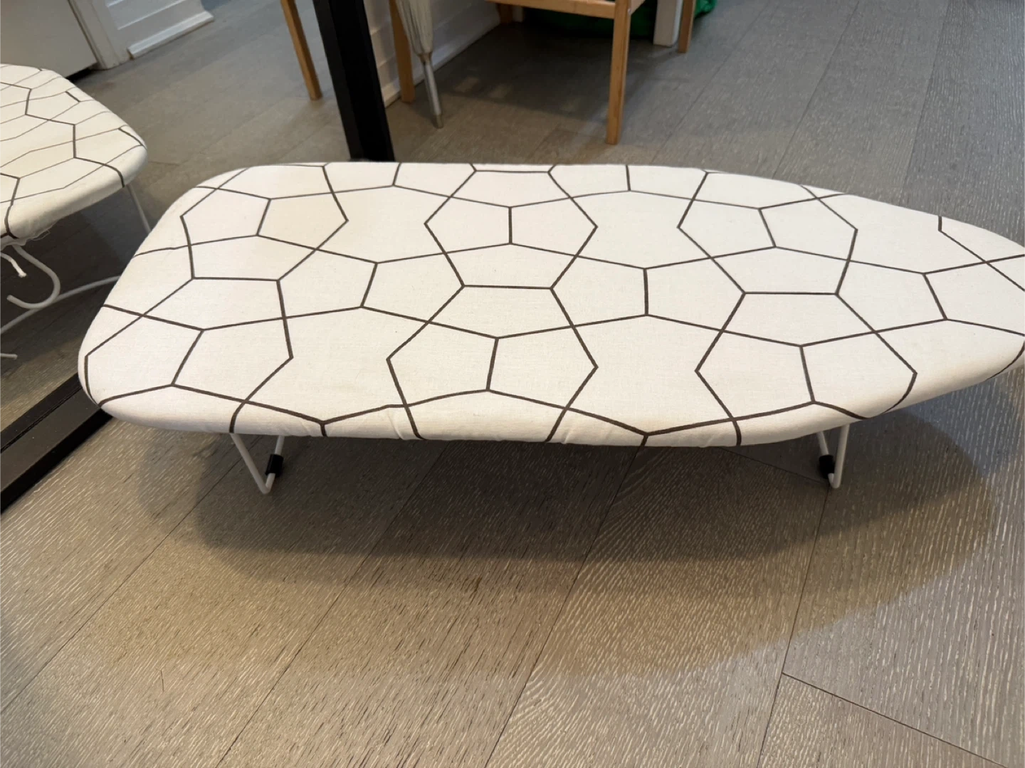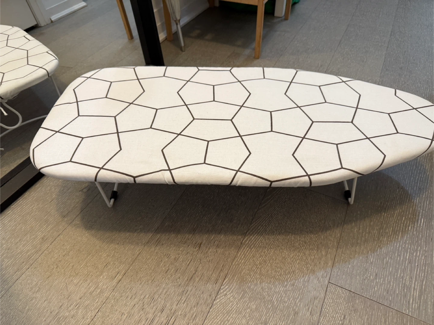 1000+Selling a gently used ironing board. It features a geometric pattern on the cover. Perfect for your ironing needs!