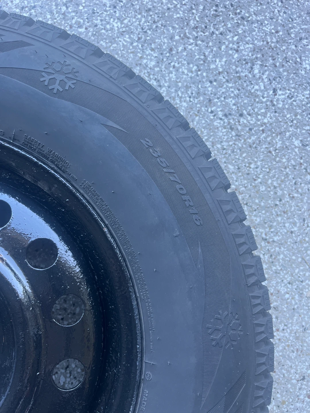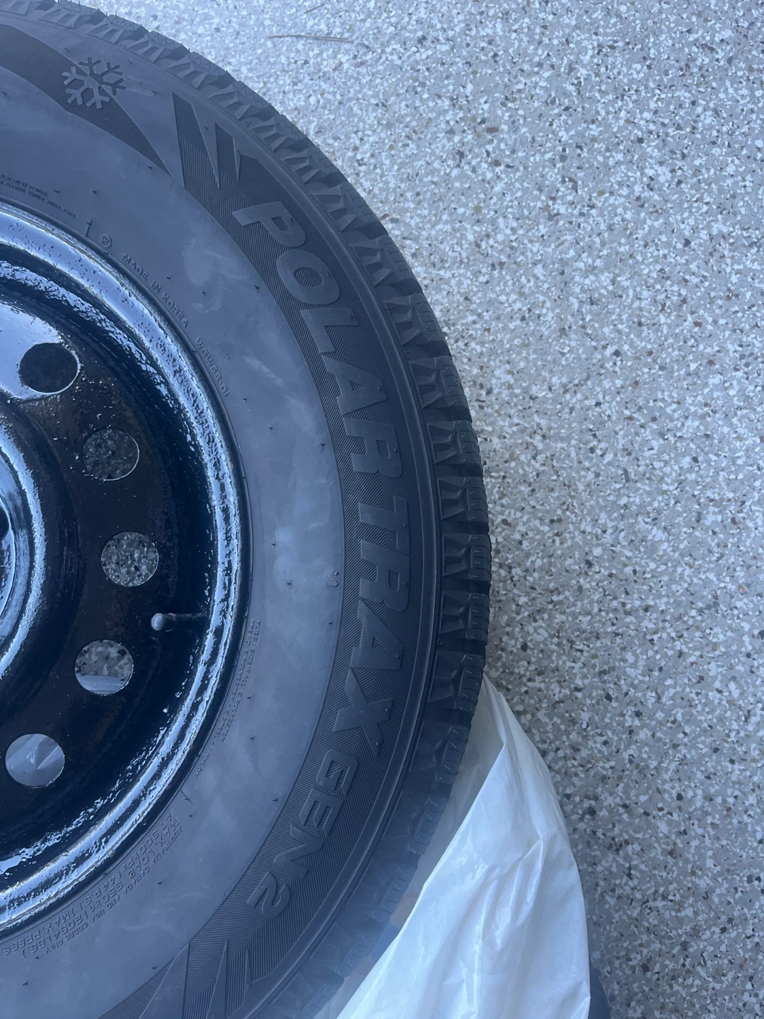 Selling an Ironman Polartrax Gen 4 tires. The size is 235/70r16 It's ready to keep you safe on the road this winter! On rims used 1 month then car was sold this summer. Came off Hyundai Santa Fe.