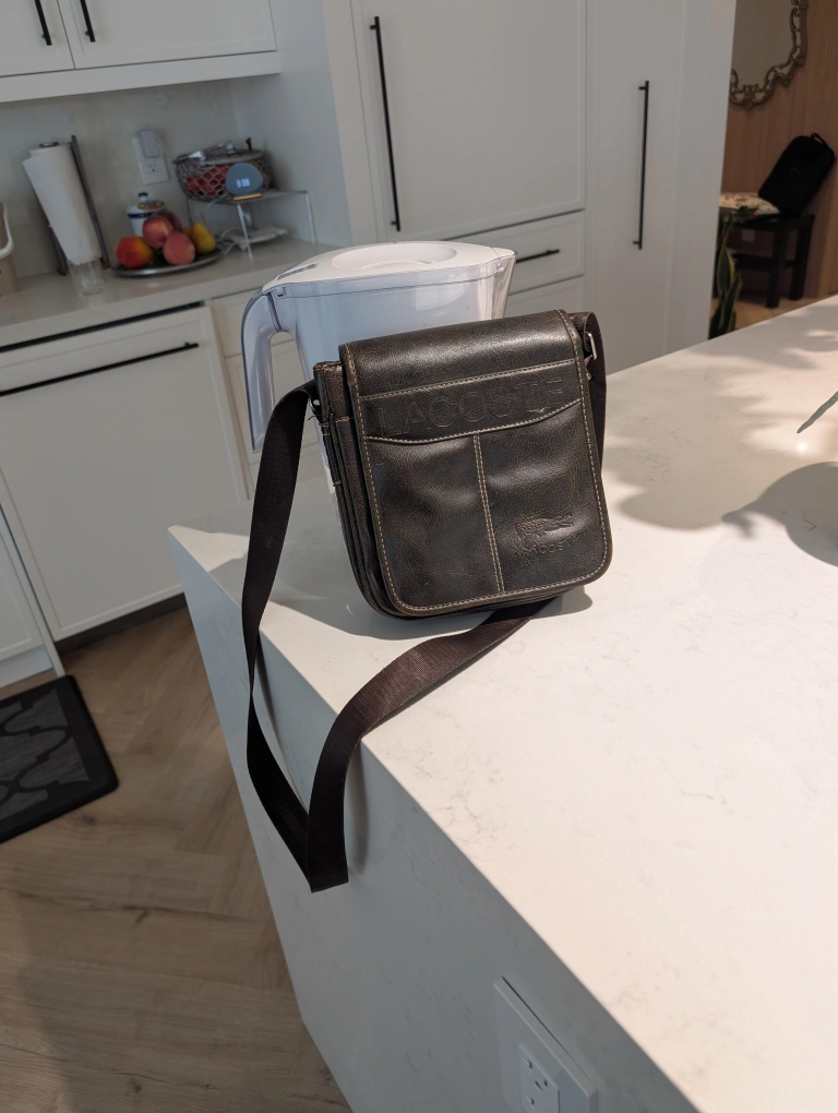 Selling a Lacoste crossbody bag. It's a stylish and practical bag made from leather, perfect for everyday use. The bag features the classic Lacoste logo. It's in great condition and ready for a new owner!
