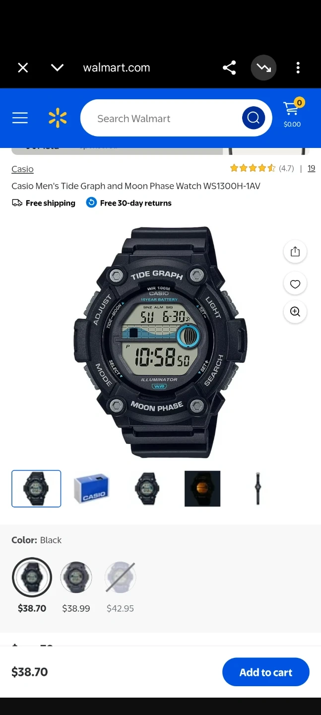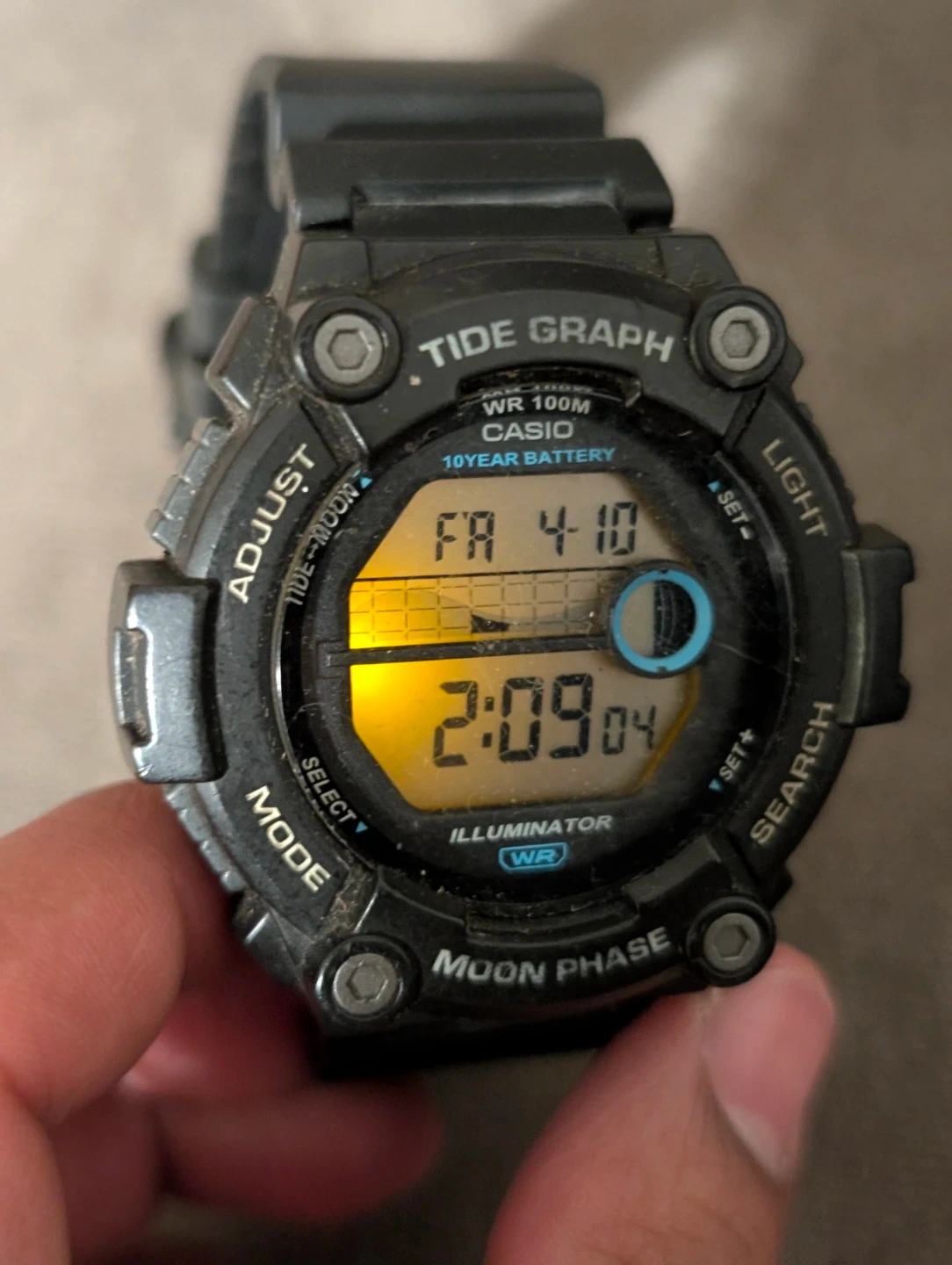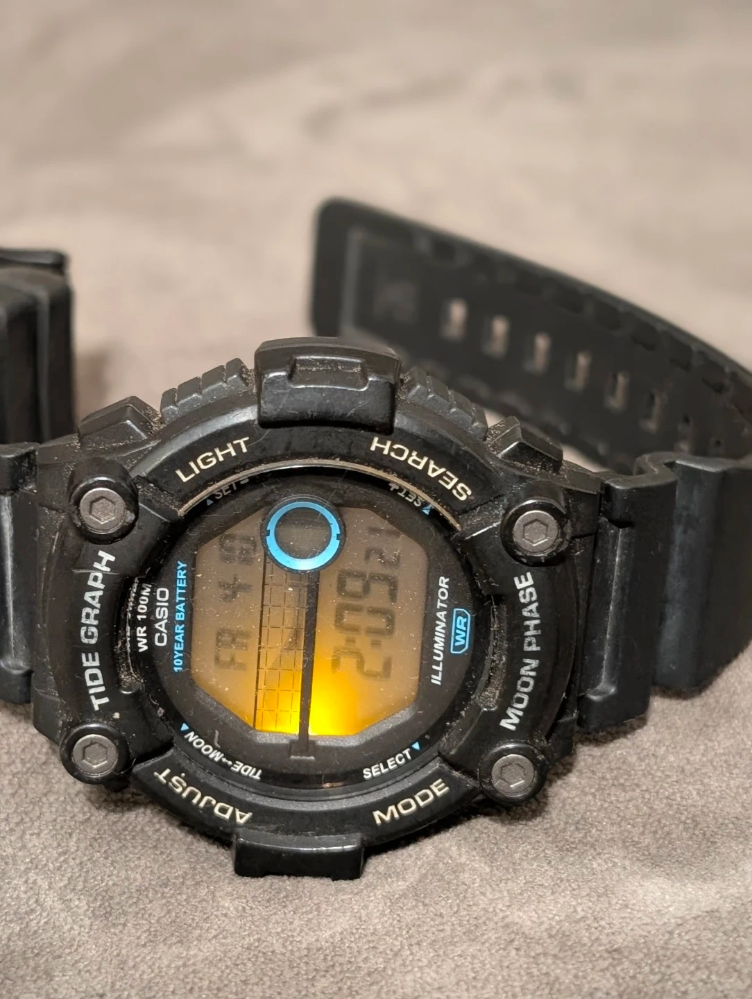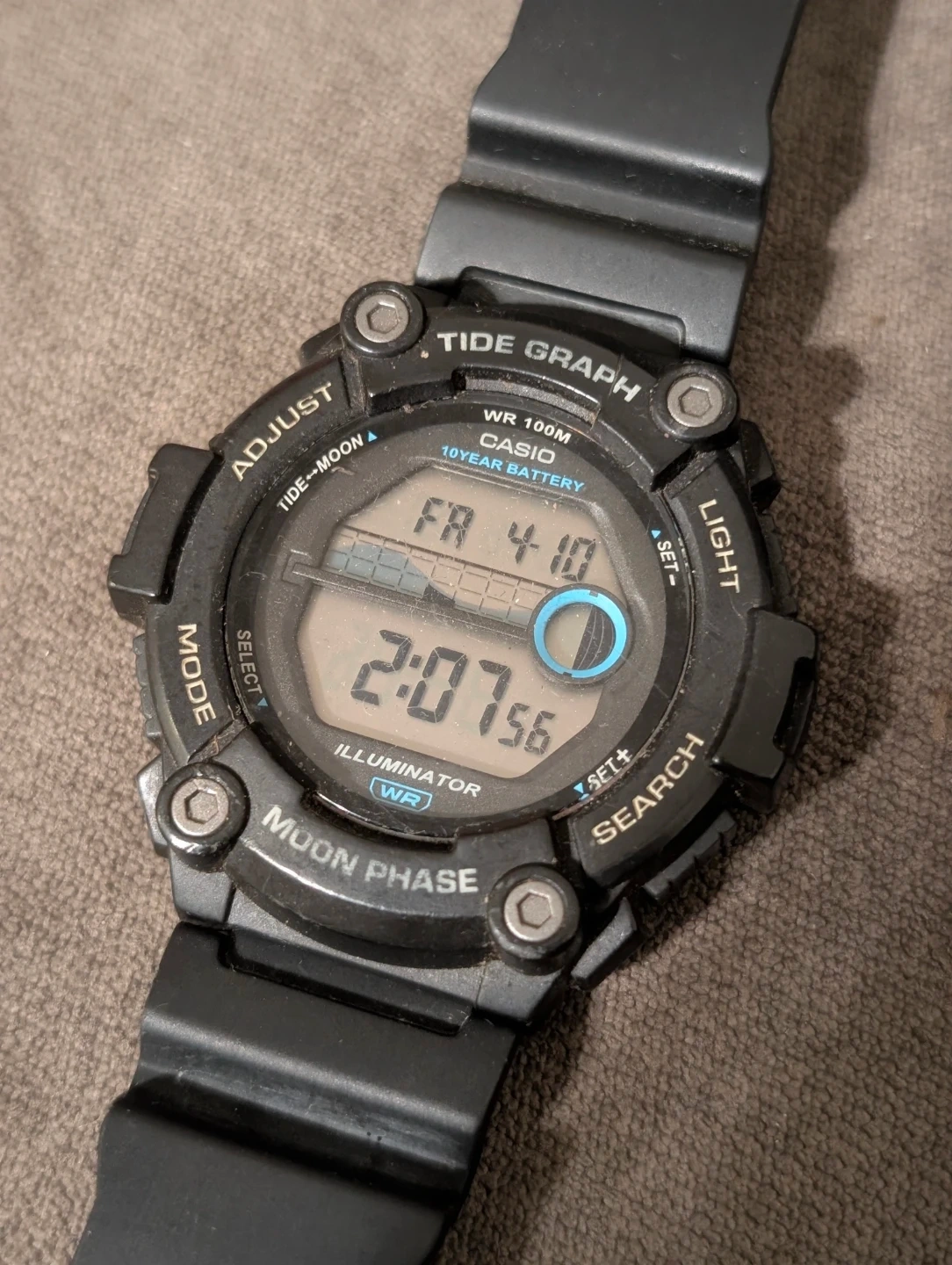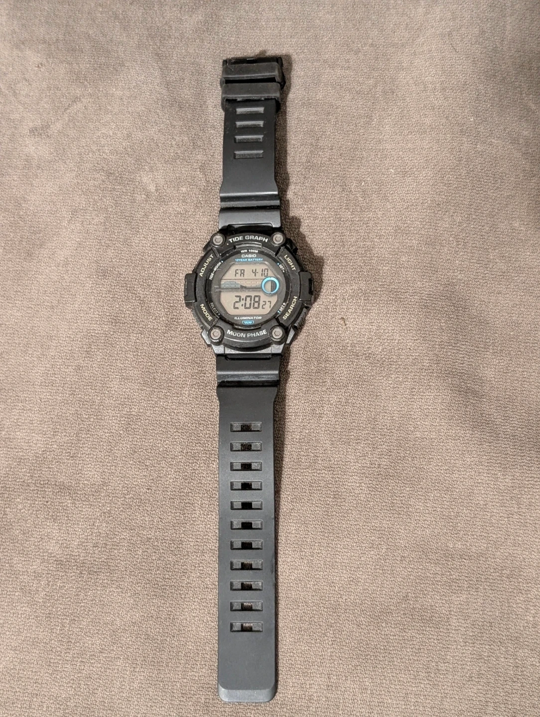 This is a black Casio Tide Graph watch with Moon Phase functionality. It's WR 100M