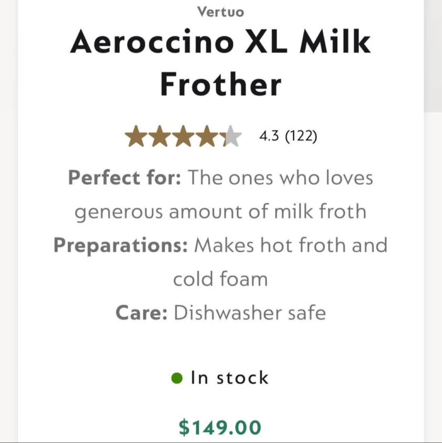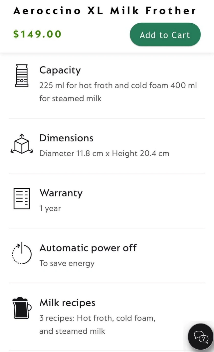 Nespresso Aeroccino XL Milk Frother