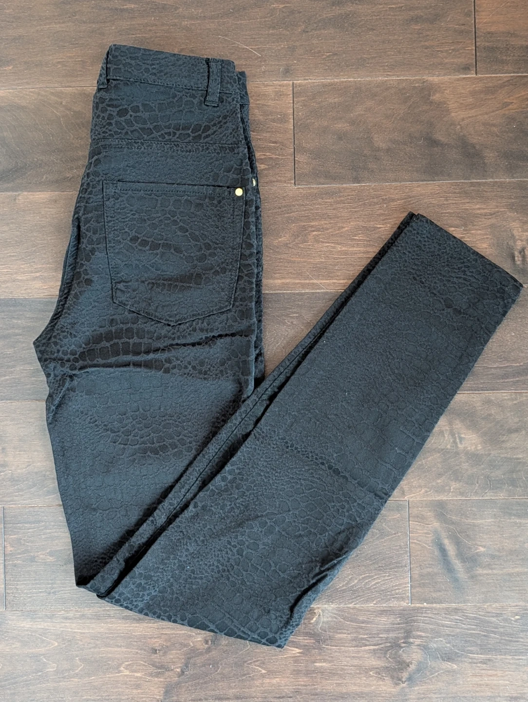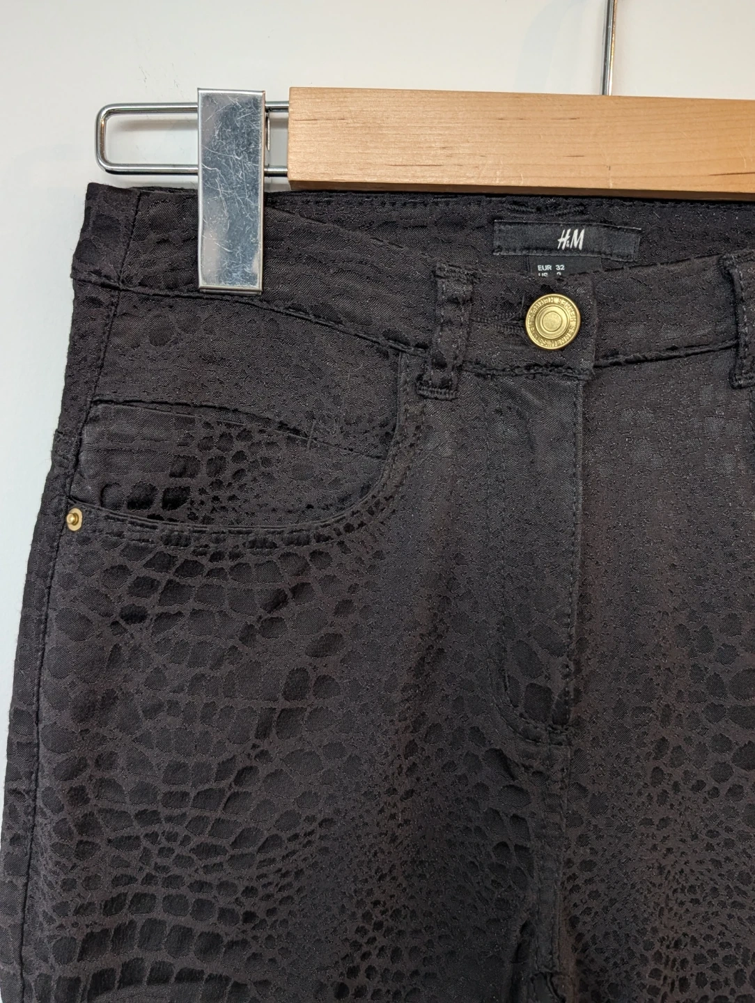 Black H&M skinny high waist pants with a subtle crocodile embossed pattern.