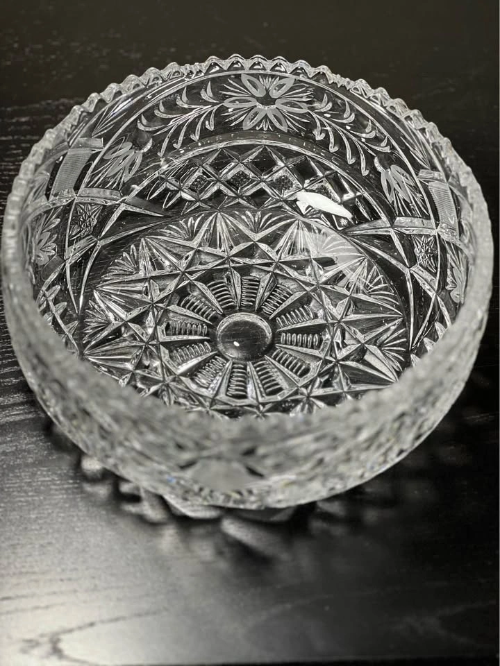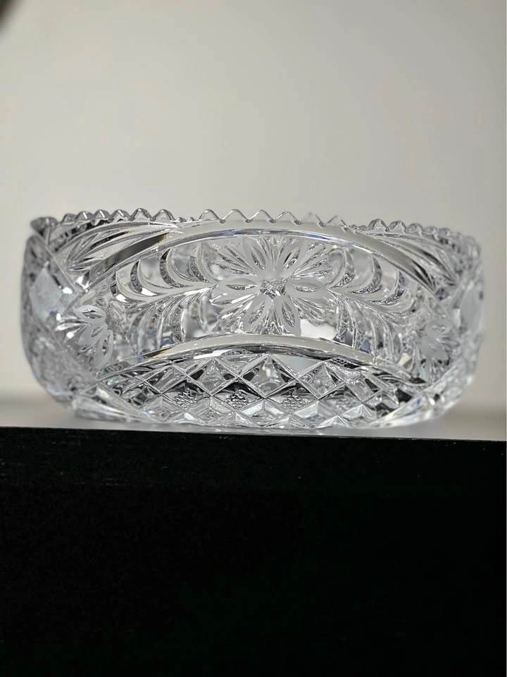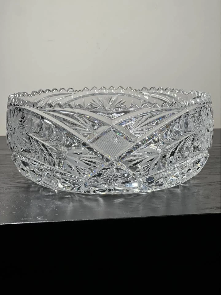 This beautiful Anna Hutte bowl is a must-have for any crystal glass collection. Crafted with care and precision, this bowl boasts a stunning elegance that is sure to catch the eye. Made from high-quality glass, this bowl is both durable and delicate, making it a perfect addition to any table setting. Whether you're looking to serve fruit, salad, or even soup, this bowl is sure to impress. Its unique design and intricate detailing make it a great conversation starter, while its durable construction ensures that it will last for years to come. Pre-owned. Pickup is 58th and 7th Ave in midtown Manhattan.