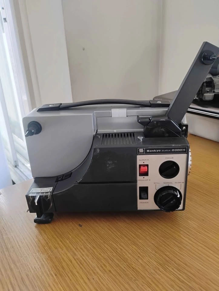 Vintage Sankyo Dualux-2000H film projector. Works with both Super 8 and Regular 8 film. Has focus control and speed settings for still, normal, and slow-motion. Power input is 117V. The unit works, unfortunately it was lost recently in a move. It is a vintage item so it's very collectible.