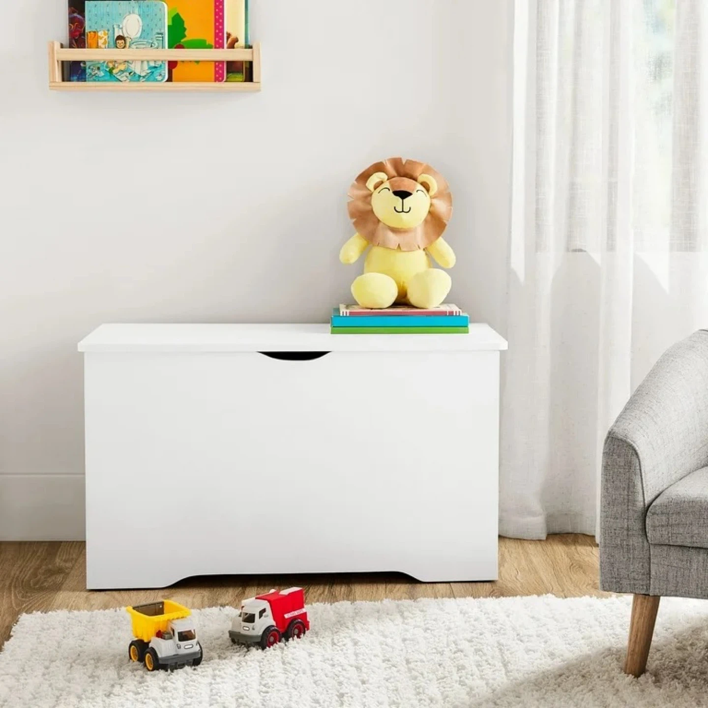 * Spacious Storage: This toy chest offers ample interior storage measuring 29" W x 14" D x 15.75" H, ideal for organizing toys, games, books, and stuffed animals.