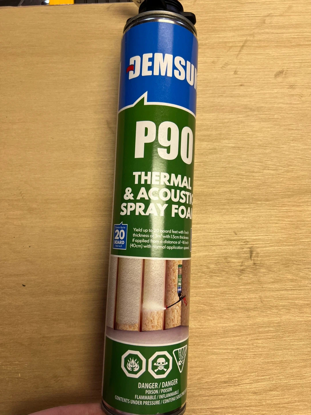 Demsun P90 thermal and acoustic spray foam for insulation projects. Yields up to 20 board feet with 1-inch thickness. Cures quickly and provides excellent thermal and acoustic insulation. This spray foam is great for sealing gaps and cracks. Made in Turkiye.