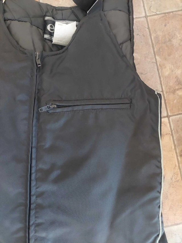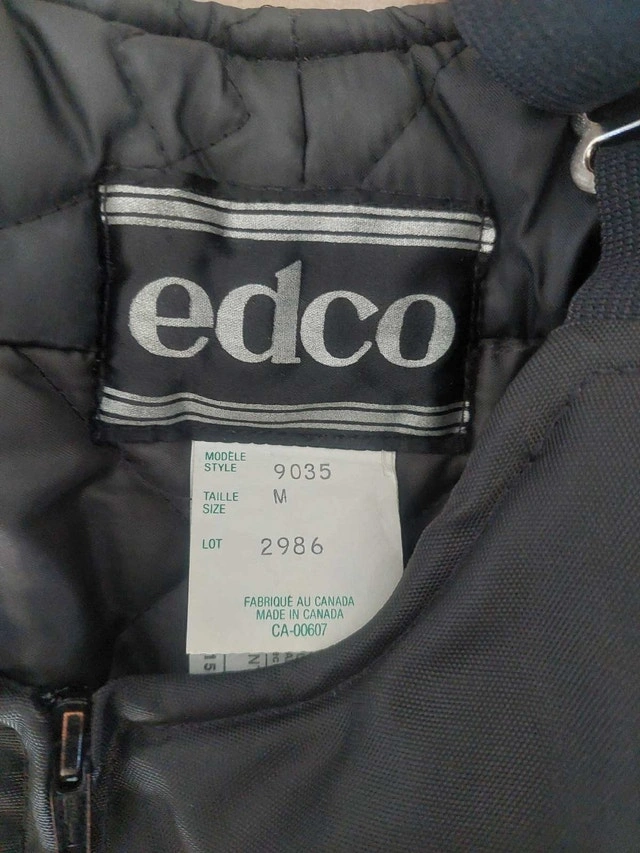 Edco Style 9035 Medium Size (Unisex) Snowmobile Bib Pants. Gently used a few times for trail snowmobiling. CANADIAN MADE. Good for sledding, skiing, snowboarding, hiking, snowblowing, and other outdoor activities. Heavy-duty insulated for durability and protection against harsh weather. Seam-sealed to keep wind and snow out. Features a chest pocket, double-reinforced knees, adjustable suspenders, and complete side zippers to the hip for easy on/off over boots. Also has a front zipper, internal snow cuffs, back elastic for a better fit, and reflective tape for visibility. In excellent condition from a smoke-free home. Asking $60. Pick up near Birds Hill Park. May be able to meet up if planned. Lots of warmth and wear left in these like-new pants.