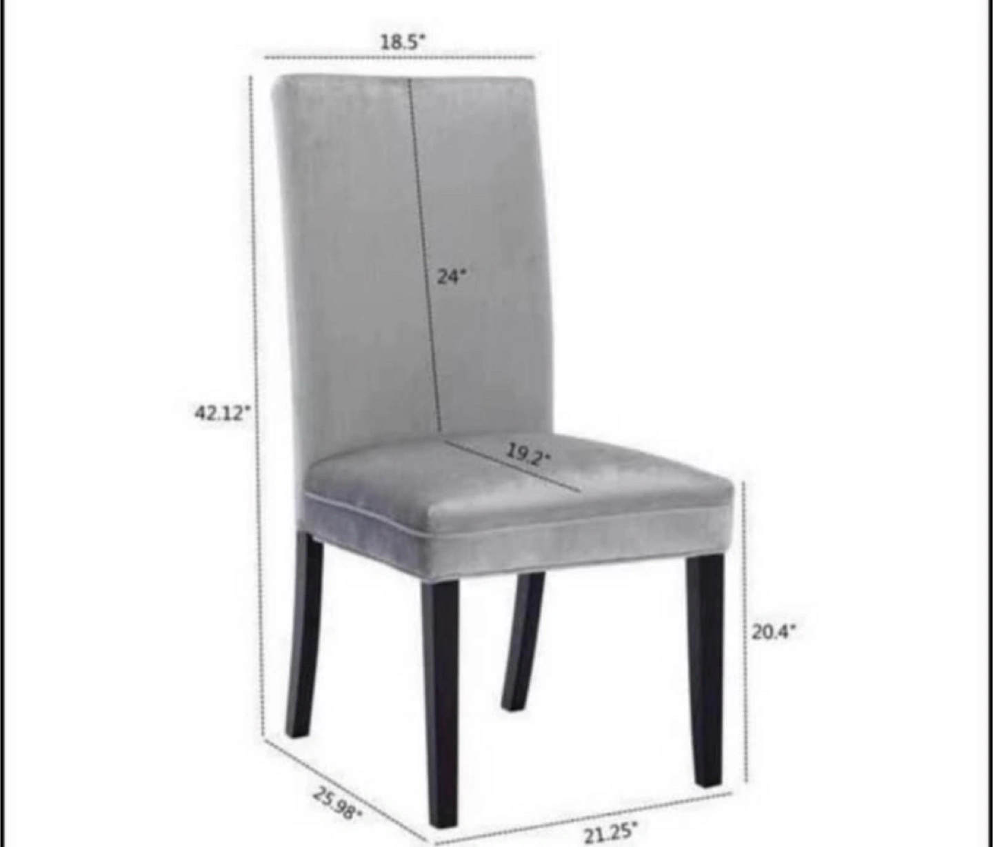 18The Isabella chair is a tall back parsons-style chair that brings true elegance into a home. Finished in a soft, lush velvet, this chair comes with a padded high back for extra comfort. Its cushioned seat comes with stitched piping nested on a pair of espresso rubberwood legs. Converging beautiful design with the comfort and luxurious plush velvet, these chairs are perfect addition for any home. Features: Colour: grey Lush velvet fabric Elevated Parsons high back chair Seat height is 51.8 cm (20.4 in.) Solid wood Espresso legs Weight capacity is 113.4 kg (250 lb.) Assembly required Specifications: Dimensions (L × W × H): 65.9 cm x 53.97 cm x 106.98 cm (25.98 in. x 21.25 in. x 42.12 in.) Weight: 7.69 kg (17.39 lb) Daha azını gör Daha azını gör
