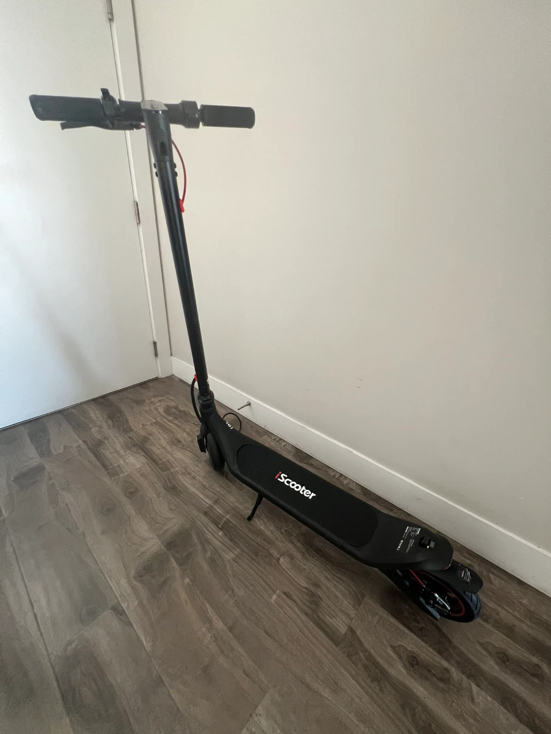 Selling an iScooter i18L-V1 electric scooter. It's in great shape and ready for some fun rides around town! Feel free to message me with any questions Scooter is foldable Comes with a charger Max speed 30km/h Range 20-30 km per 1 charge