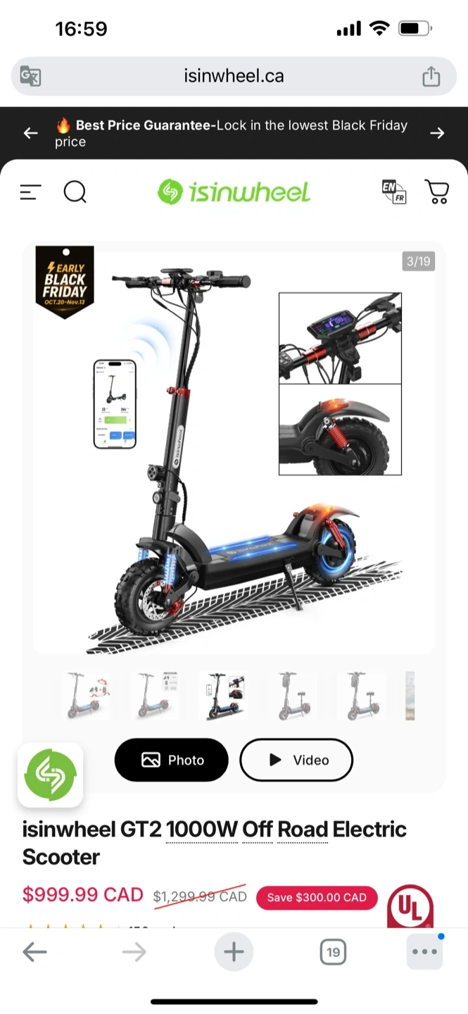 0Selling an isinwheel GT2 1000W off-road electric scooter. It has a sturdy build and is ready for some adventures!