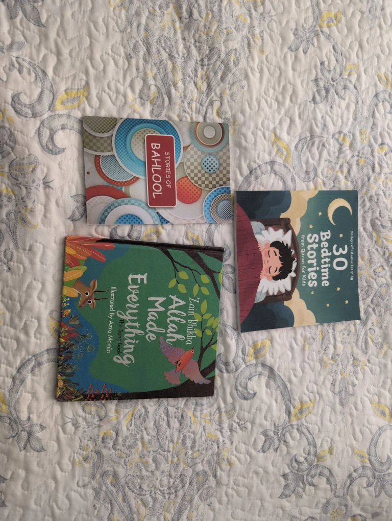Selling a set of children's books! Included are: - Stories of Bahlool - 30 Bedtime Stories from Quran for Kids - Everything Allah Made by Zain Bhikha, illustrated by Azra Momin