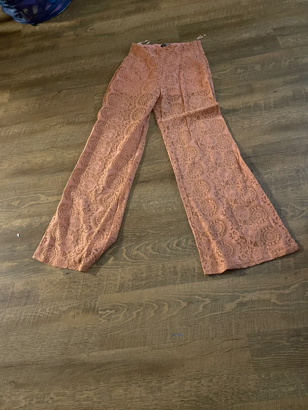 Fashion Nova Pink Lace Wide Leg Pants and Matching Duster Set