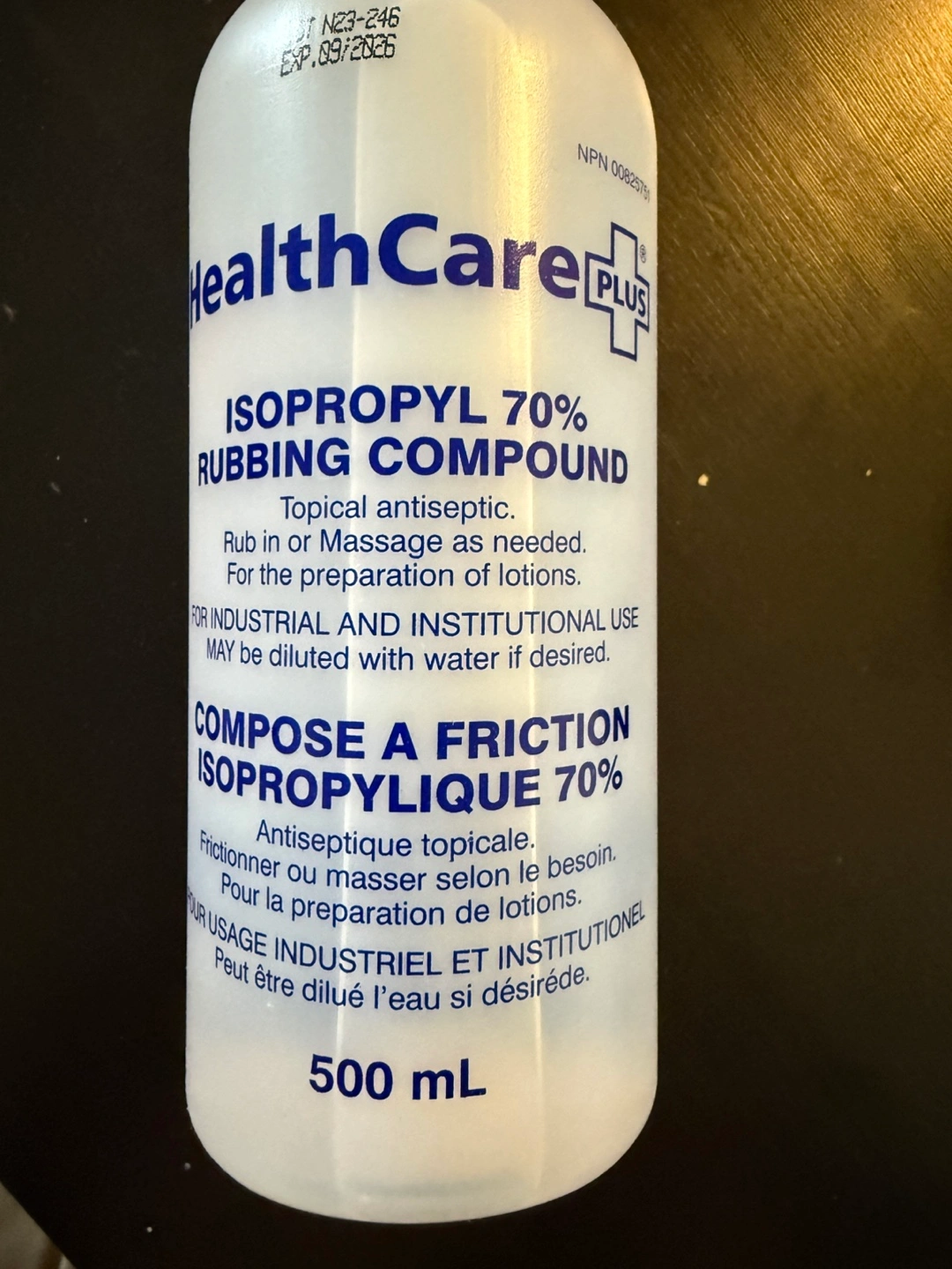 Topical antiseptic. Rub or massage as needed. For preparing lotions. Industrial and institutional use. Dilutable with water. 70% of alcohol. 500 ml