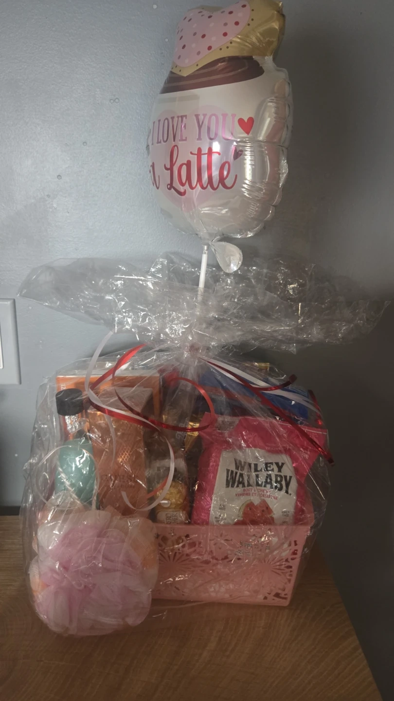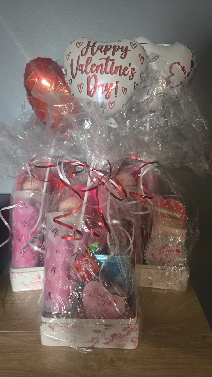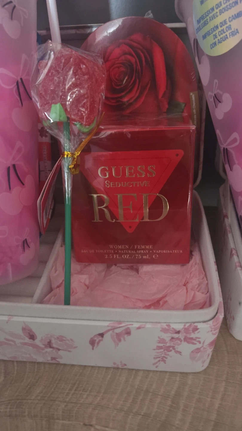 Guess Valentines Day Baskets. Comes with Guess Perfume, chocolate, colour changing bow/cherry cup, gummy rose, bathbomb. Packaged and ready to go!! $70 4 available