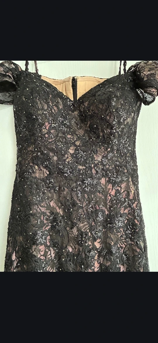 Ivonne D Black Lace Sequin Off-the-Shoulder Gown - Size 8