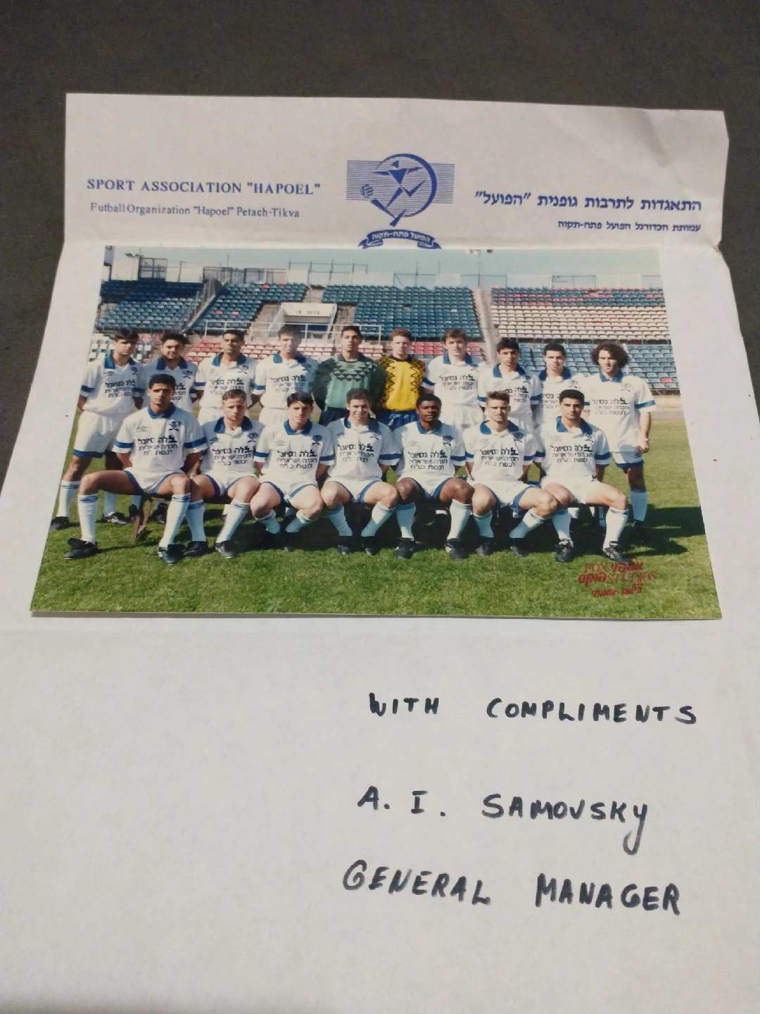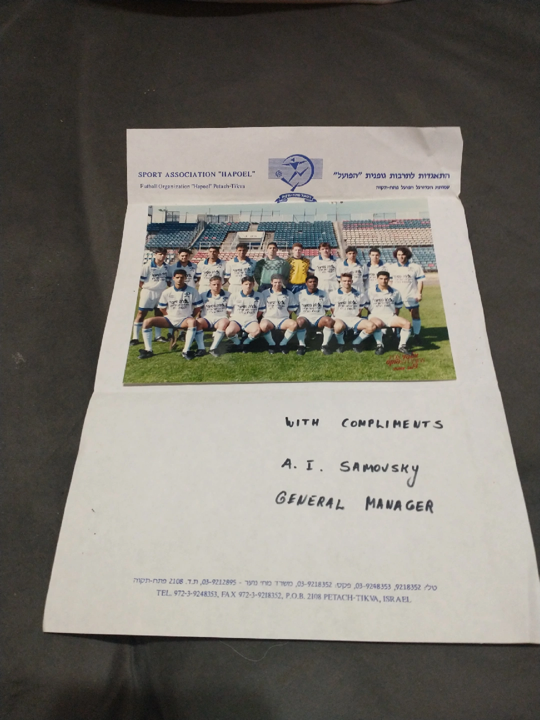 Israeli FC Hapoel Petach-tikva late 1980s team photo in box 1. Ukrayini! Please note, I am not a dealer nor business, I'm simply selling my collections. I don't buy or trade, nor meet or deliver... all purchases can be picked up in the lobby of my building of residence at Broadview/Pottery. I will gladly ship most items but will not pay postage nor accept responsibility for loss. I welcome any questions but at the first sign of insolence or trolling, the messager will be blocked. I stand behind all my items and offer satisfaction guarantee or full refund. Please refer to my feedback stats which reflect my high customer satisfaction. Thank you. All my items come from a MAGA-free home.