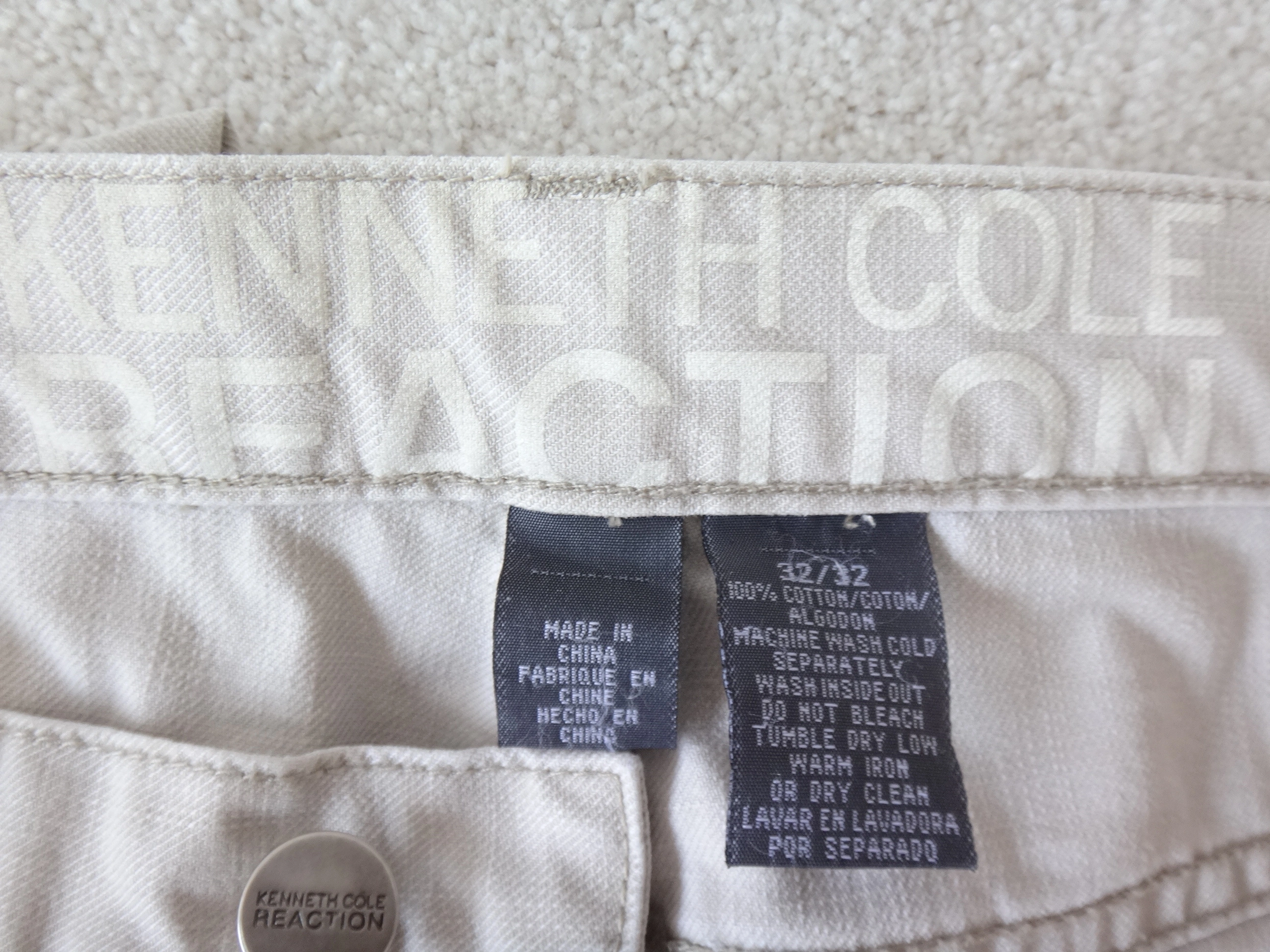 KENNETH COLE Reaction men's 32 waist x 32 length light khaki 5 pocket jeans.