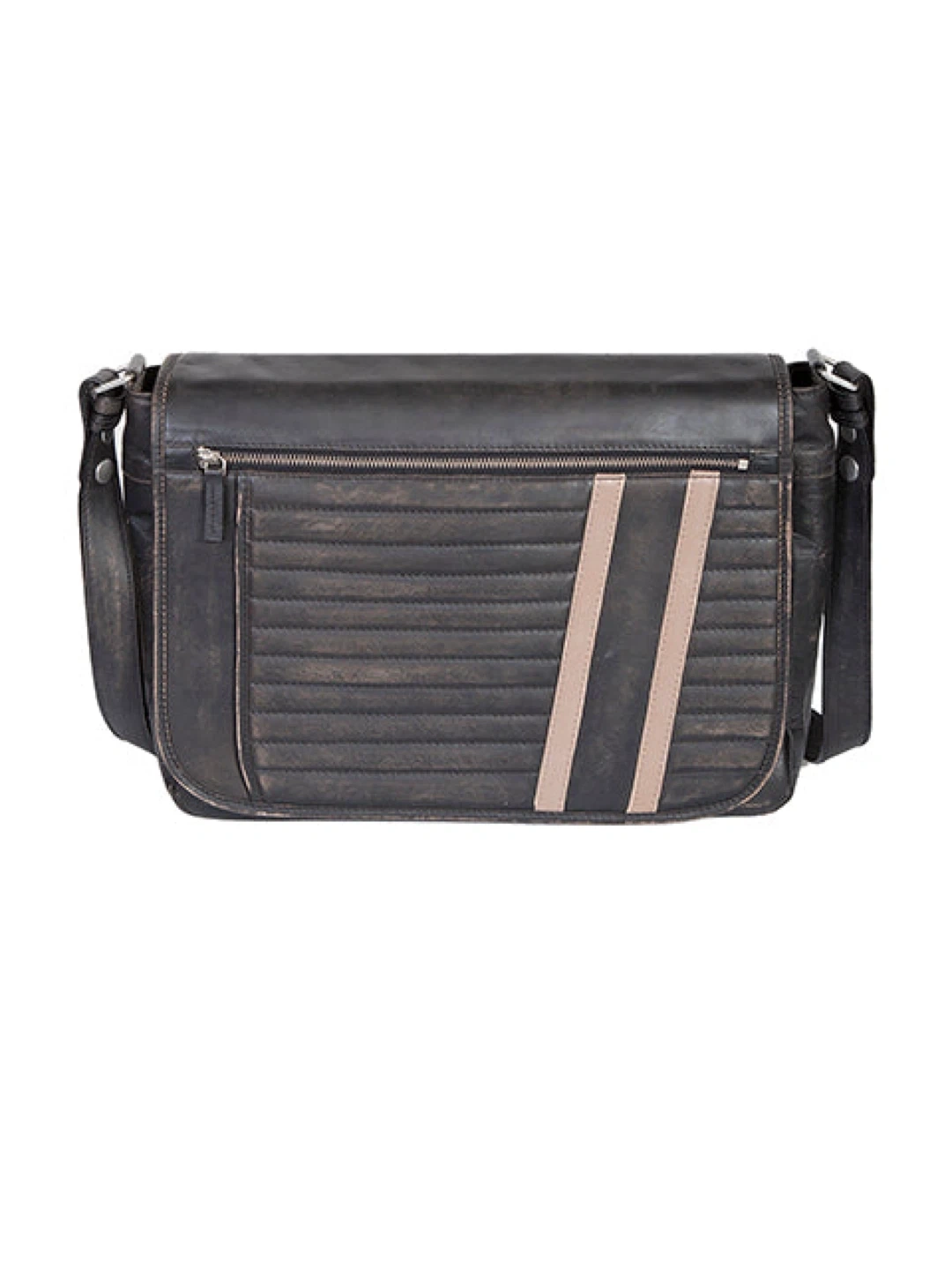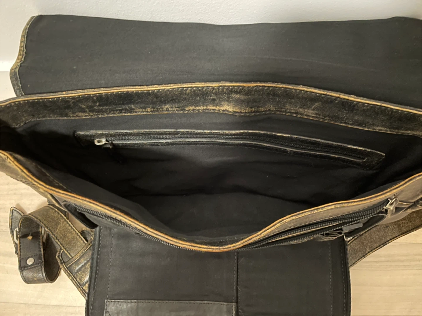 Sanded calf flap-over brief w/outside zip pocket on flap.