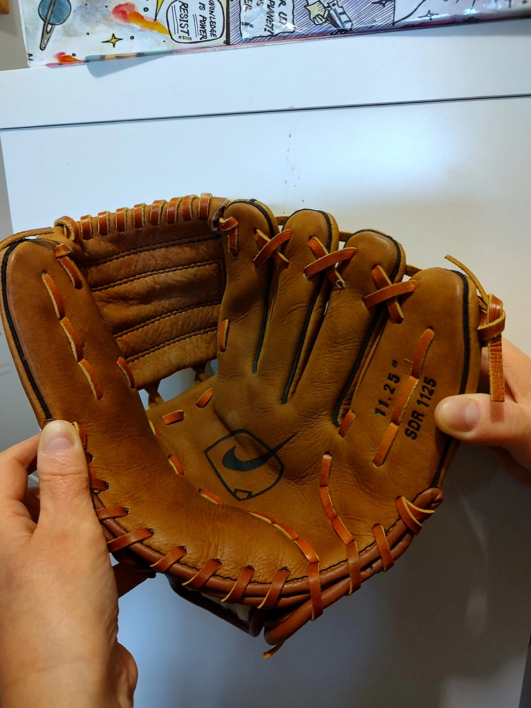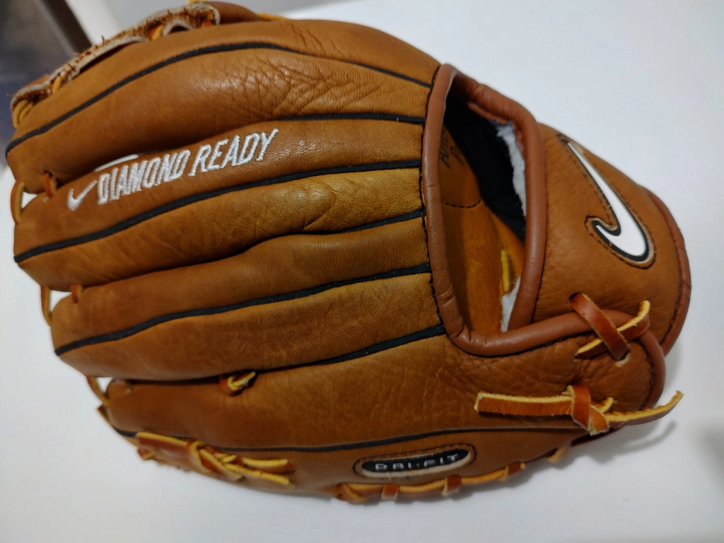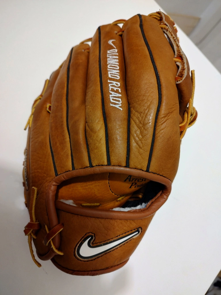 Made from genuine leather NIKE baseball glove with energy arrest padding.