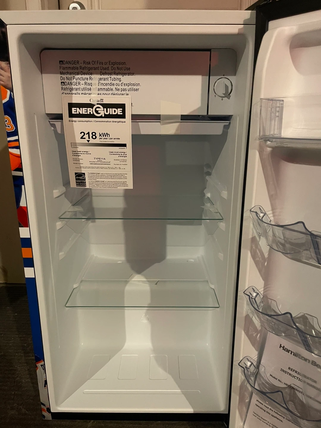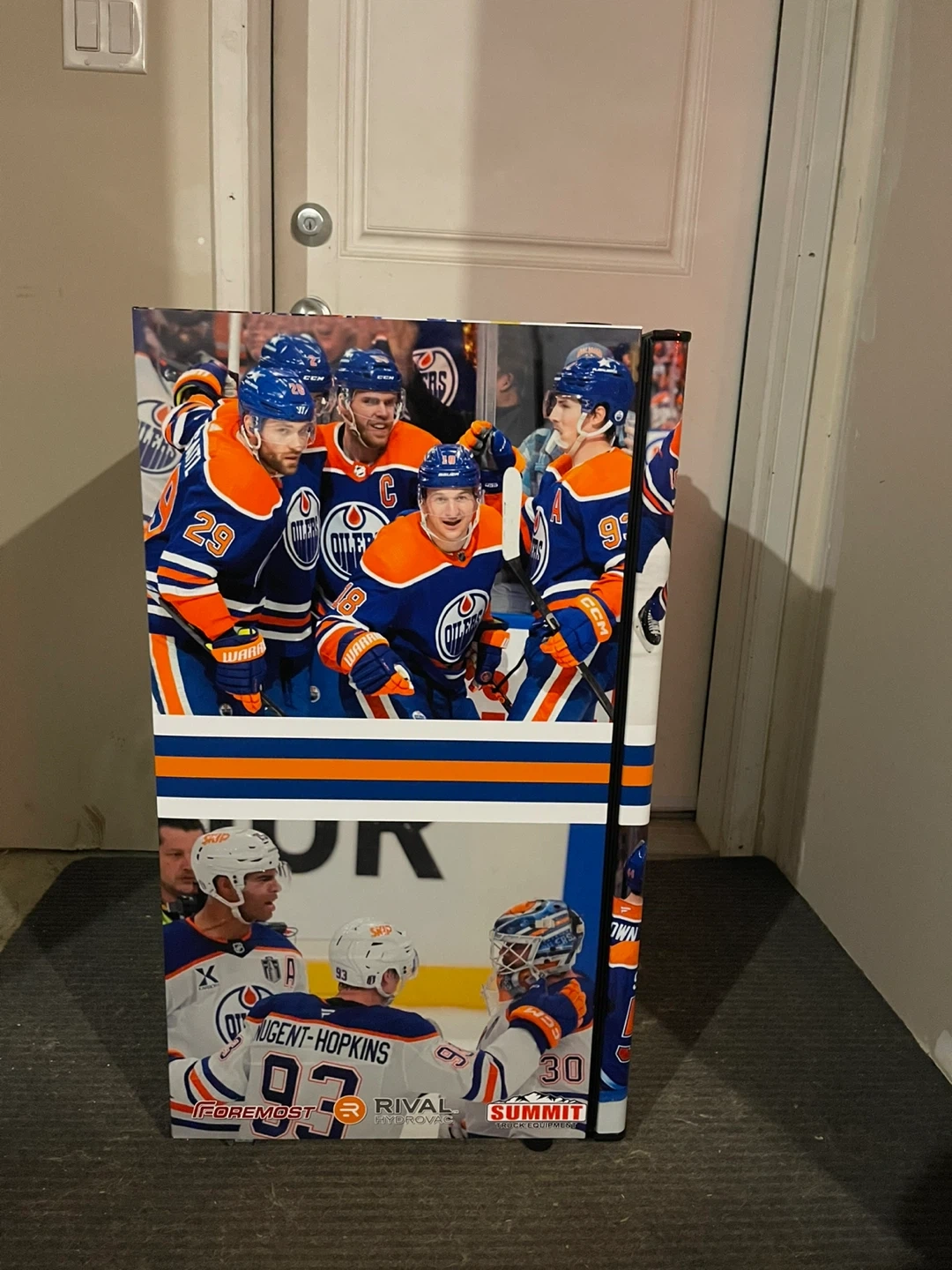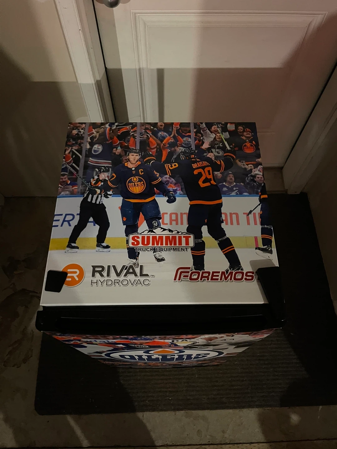 Selling a Hamilton Beach mini fridge decked out with Edmonton Oilers graphics! It's in great shape and perfect for a dorm room, office, or games room