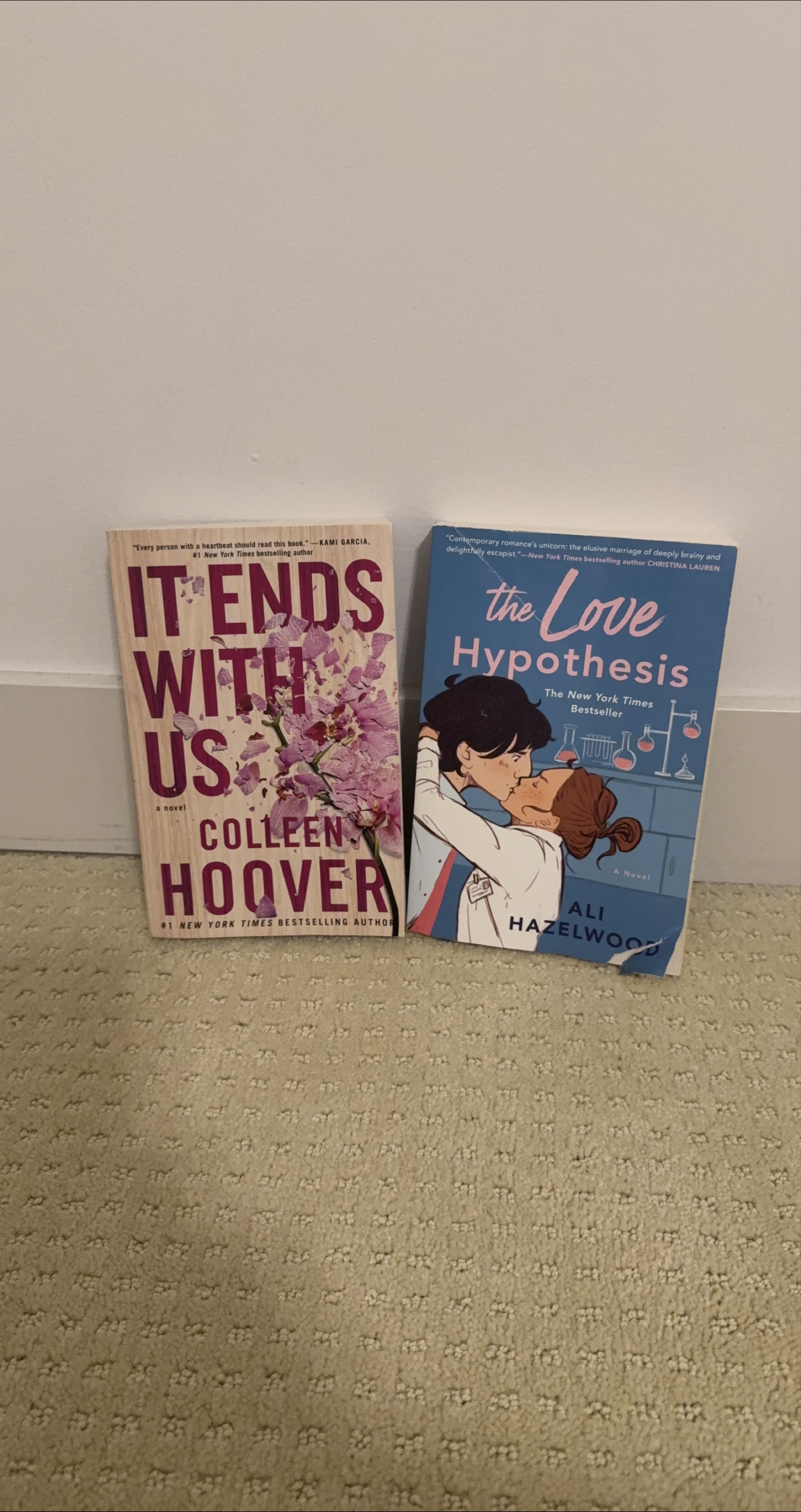 Selling two popular novels: "It Ends With Us" by Colleen Hoover and "The Love Hypothesis" by Ali Hazelwood