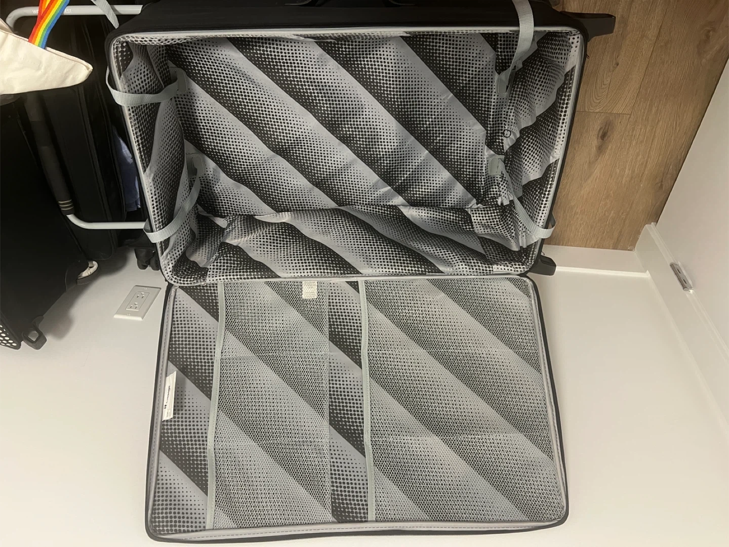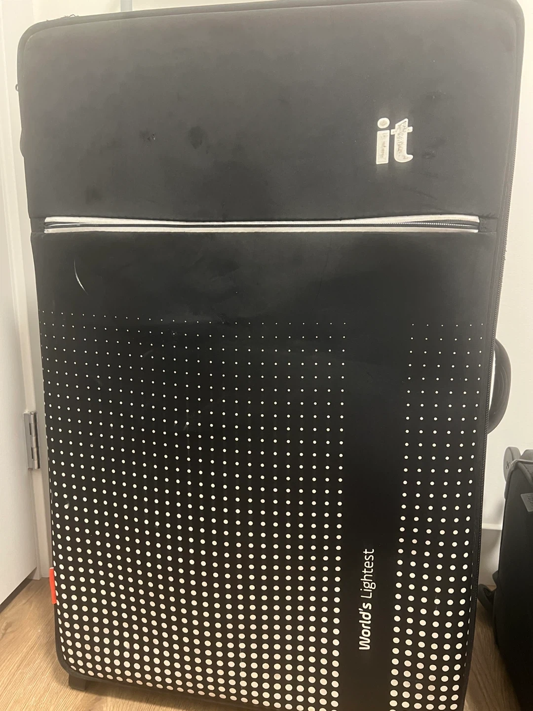 65Selling 1 black 'it' brand suitcase, part of their 'World's Lightest' line. It's in good condition, with some wear and tear, but is ready for your next trip and can withstand rigorous travel conditions. All issues are pictured. They’re not 4-wheel.