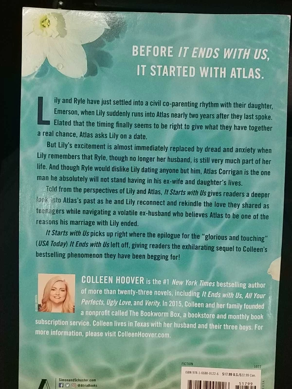 20Selling the novel 'It Starts With Us' by Colleen Hoover. It's a great read! The book is the sequel to 'It Ends With Us' and continues the story of Lily and Atlas. Porch pickup only. Simcoe/Conlin area.