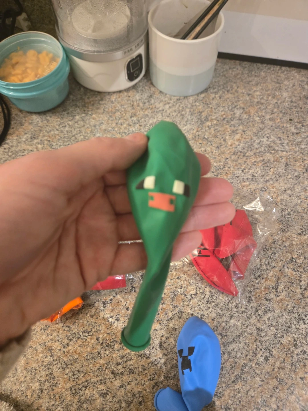 This kit includes Minecraft themed balloons and a 'Happy Birthday' banner. The balloons feature popular characters and designs from the game. Perfect for a kid's birthday party!