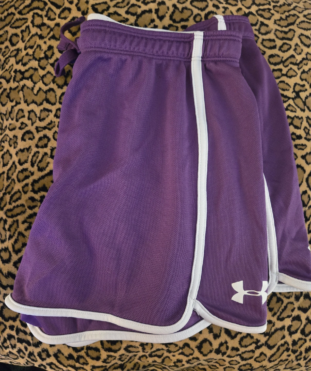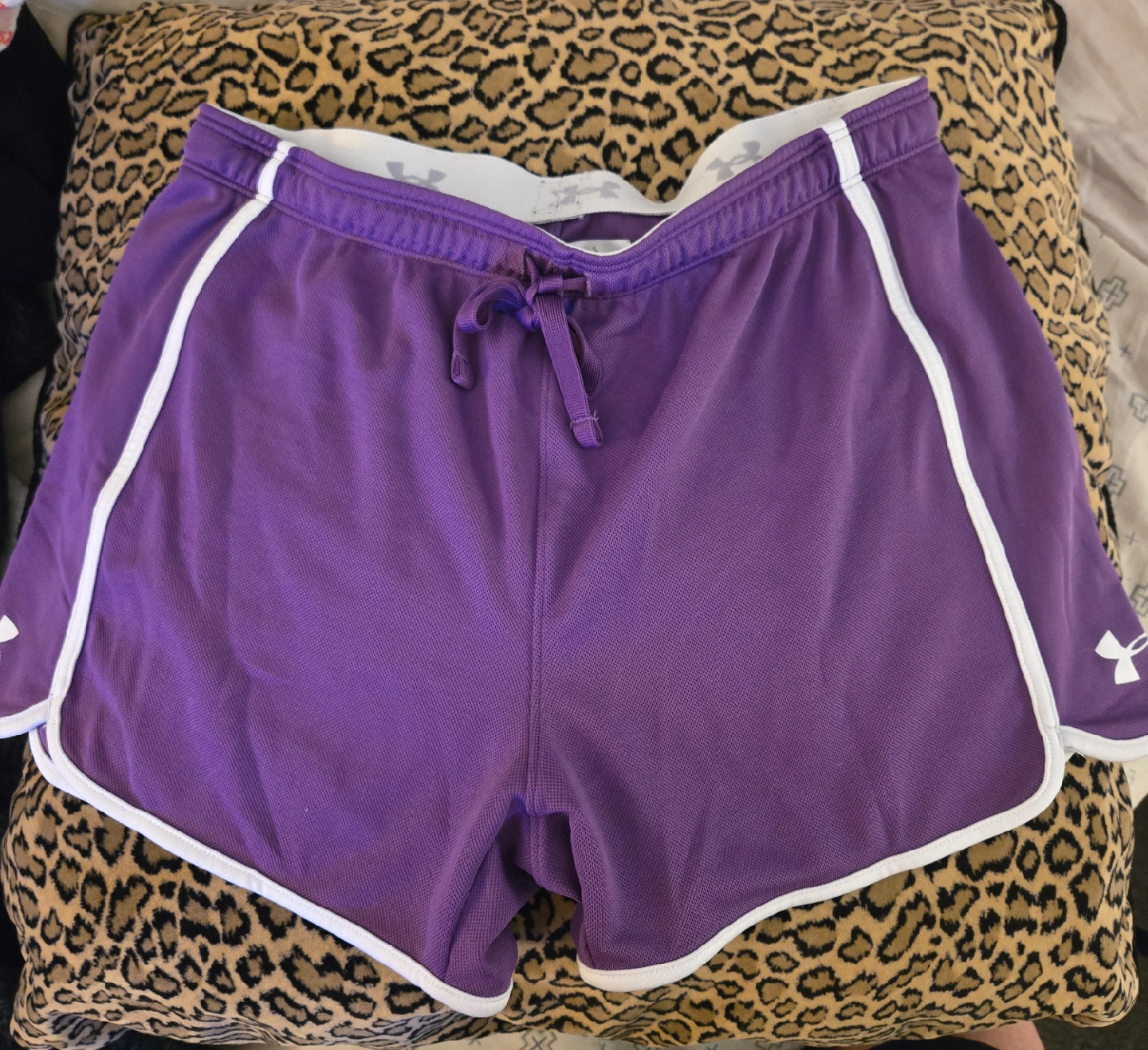 Selling a pair of Under Armour HeatGear shorts in a lovely purple colour! They're a size small and made of 100% polyester. Perfect for workouts or just lounging around.