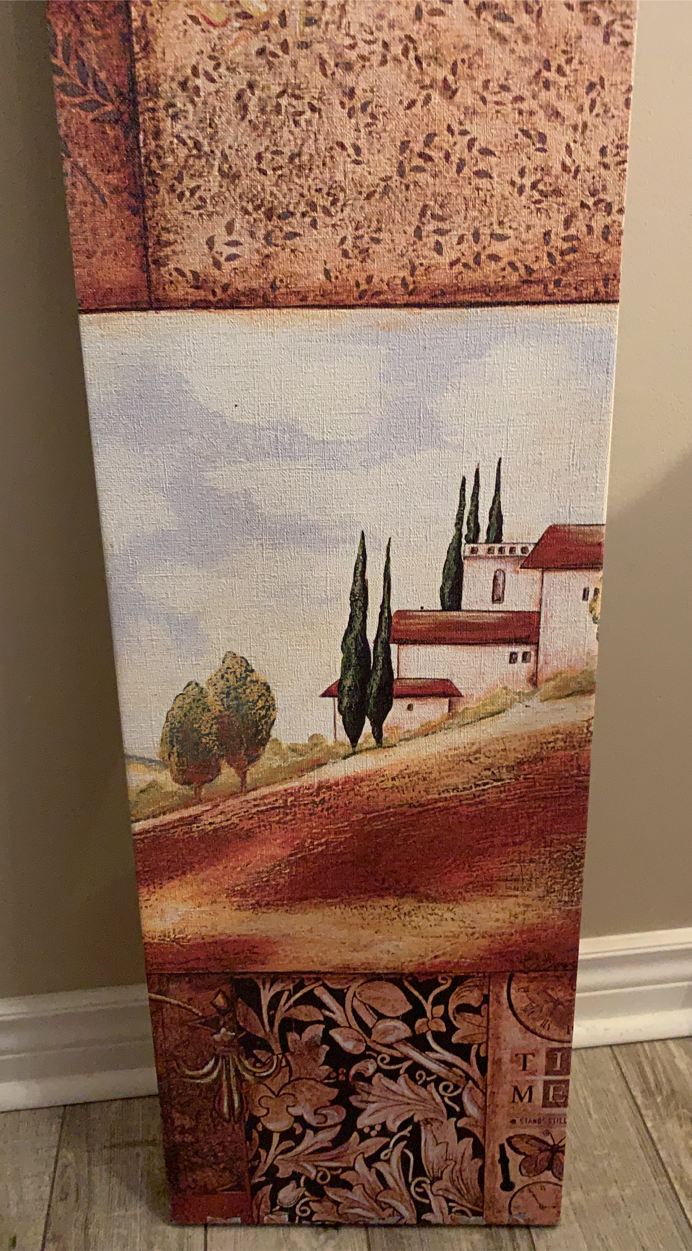 10Beautiful canvas wall art featuring an Italian countryside scene with a villa and cypress trees. The colours are warm and inviting, perfect for adding a touch of Tuscany to your home