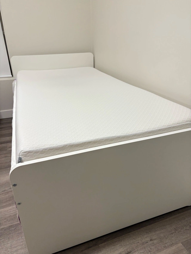 10We are looking to sell a few items purchased in September last year, all in excellent condition: • White single bed (IKEA). $130 • Memory foam mattress (JYSK) $225 • Small white rug (JYSK) $60 • Black plush futon (Walmart) $225 • Two black leather bar stools (Walmart) $125 • Small folding iron stand $10 Some other household items at reasonable price. These would be great for students or anyone looking for affordable furniture. For Sale By: Owner