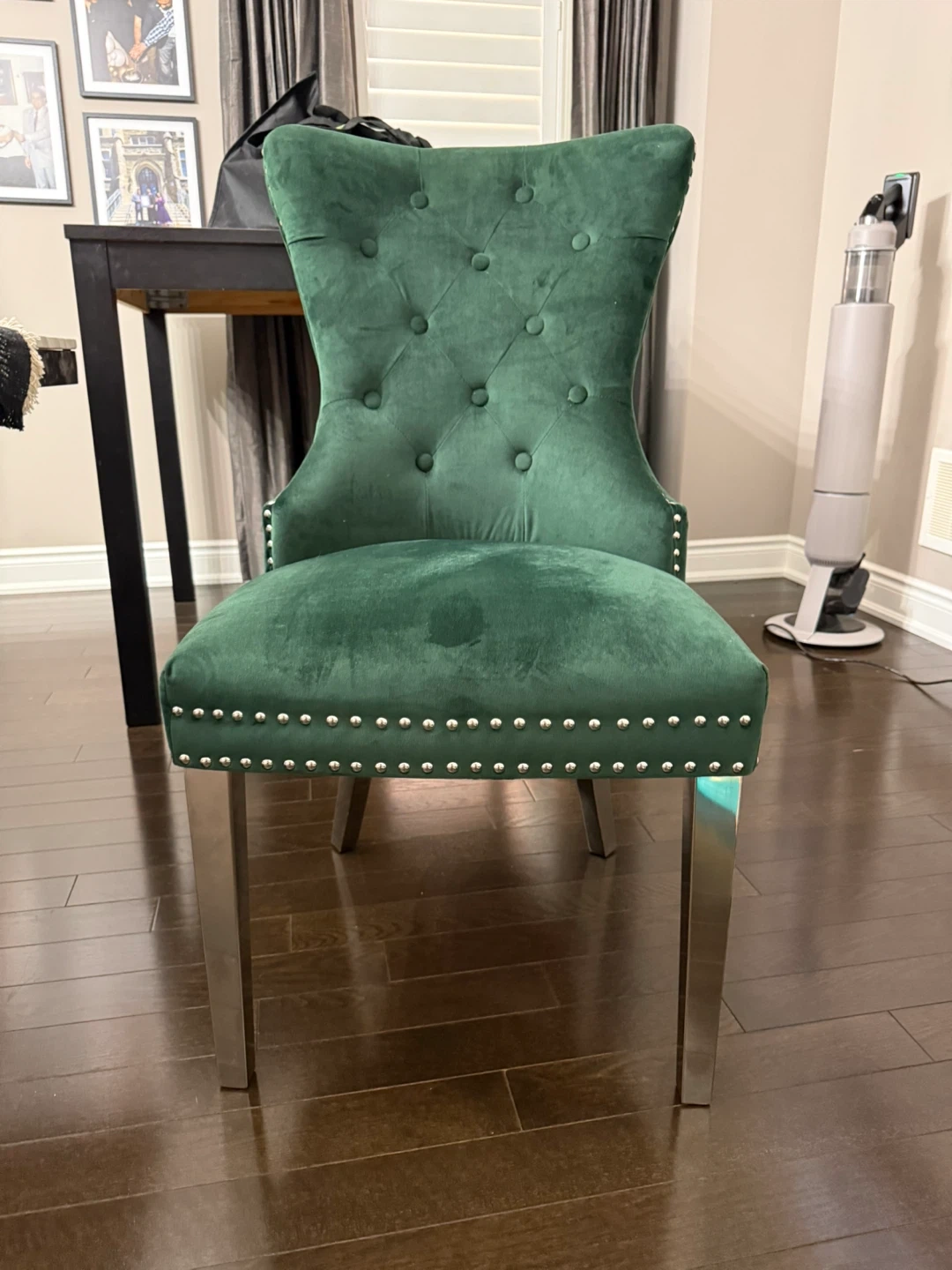 Set of 4 Grey Velvet Dining Chairs & 2 green accent chairs
