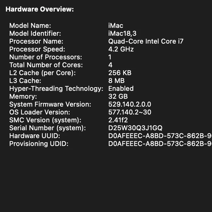 Selling my 2017 Apple iMac, a powerhouse of performance and style, featuring a vibrant 27-inch Retina 5K display, a 4.2 GHz Quad-Core Intel Core i7 processor, 32 GB of memory, and a 3TB Fusion Drive. It is running the latest macOS Ventura 13.7.8, this iMac is perfect for creative professionals or anyone who appreciates high-quality computing. The condition is good, with some signs of wear but fully functional. Own a piece of Apple's legacy without breaking the bank!