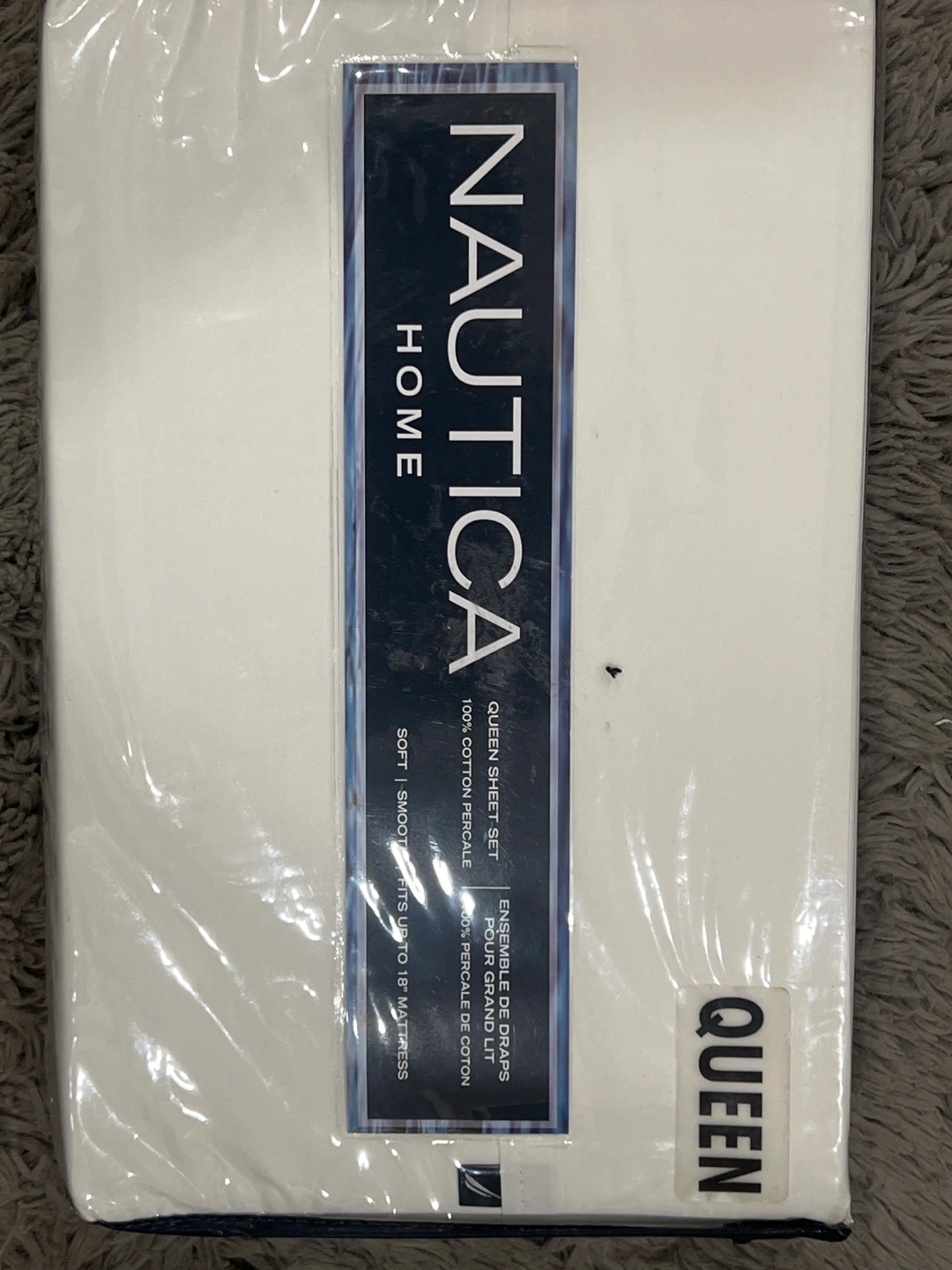 Brand New never opened Nautica Home queen sheet set in white. It's 100% cotton percale and soft. Fits up to 18" mattress. Includes original packaging.