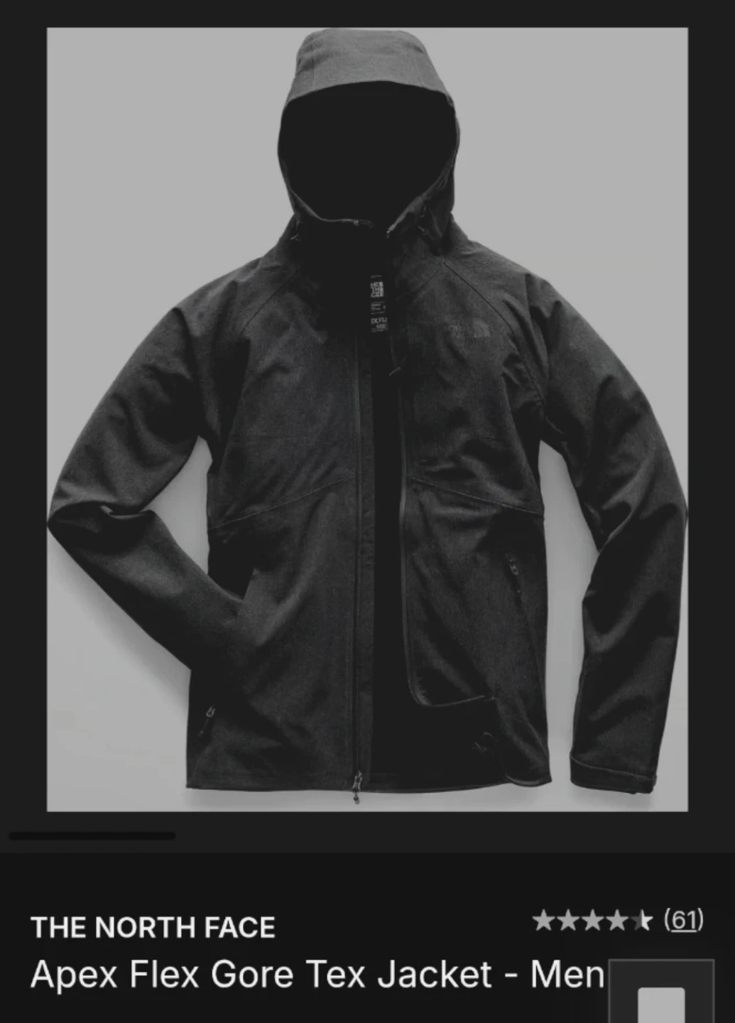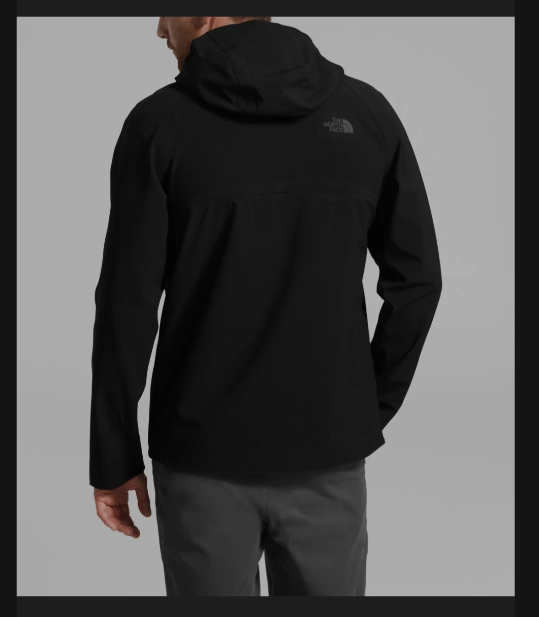 This is The North Face Apex Flex Gore-Tex jacket for men. It's designed for outdoor activities and offers waterproof protection. This jacket is black and features a full zip closure.