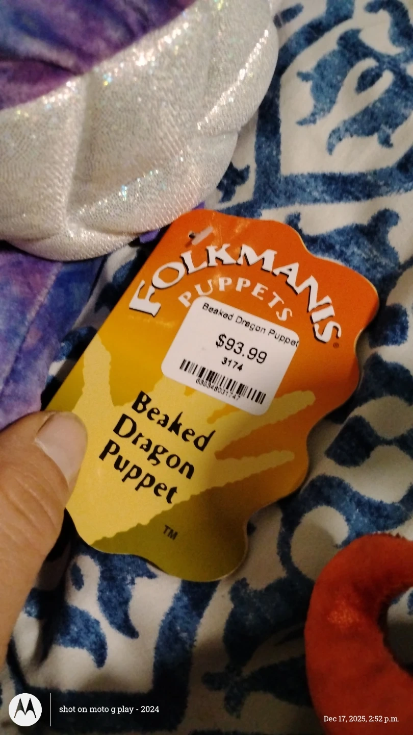 Selling a Folkmanis Dragon Puppet in a lovely blend of blue and purple! This plush puppet is in great condition and ready for imaginative play or display. It's a unique and eye-catching piece. Its never been used the tag says $93.99.