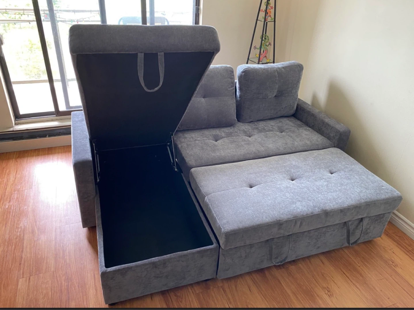 Grey Sleeper Sectional Sofa with Storage Chaise (We deliver)