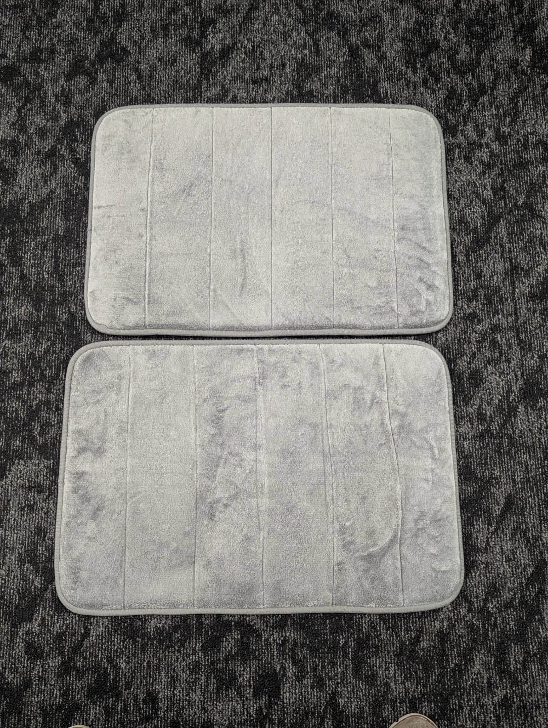 Selling a set of 2 grey bath mats, rugs Like new in great condition, plush texture and ready to use in your bathroom! 2 x $5
