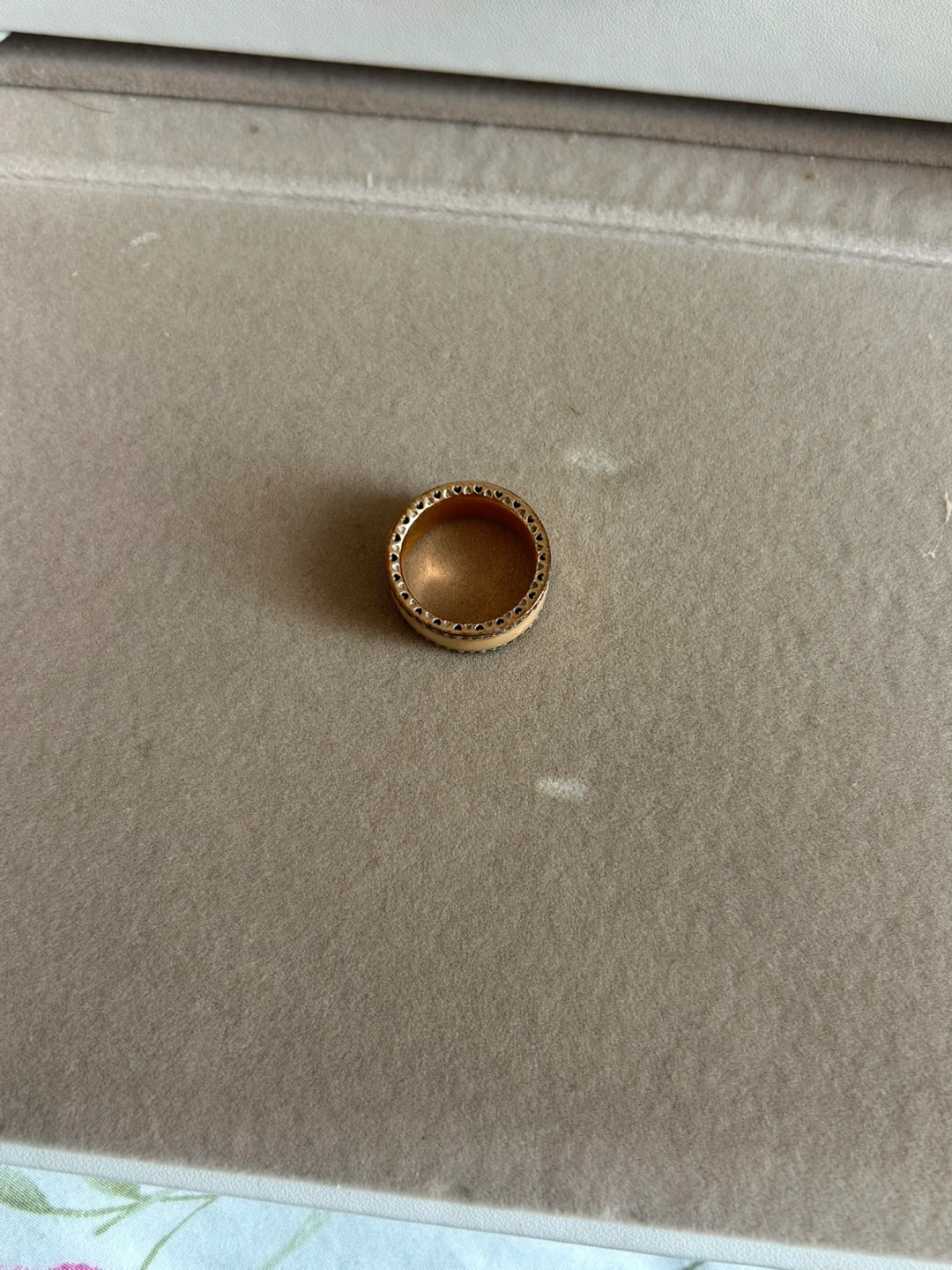 A stylish gold-toned ring featuring a band with decorative gemstone accents. This ring adds a touch of sparkle to any look. It's perfect for everyday wear or special occasions.