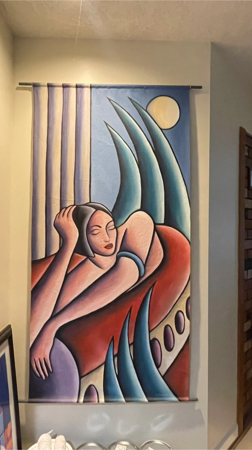 This is a wall art tapestry signed by M. Seaman. It's in great condition and ready to add a unique touch to your home decor