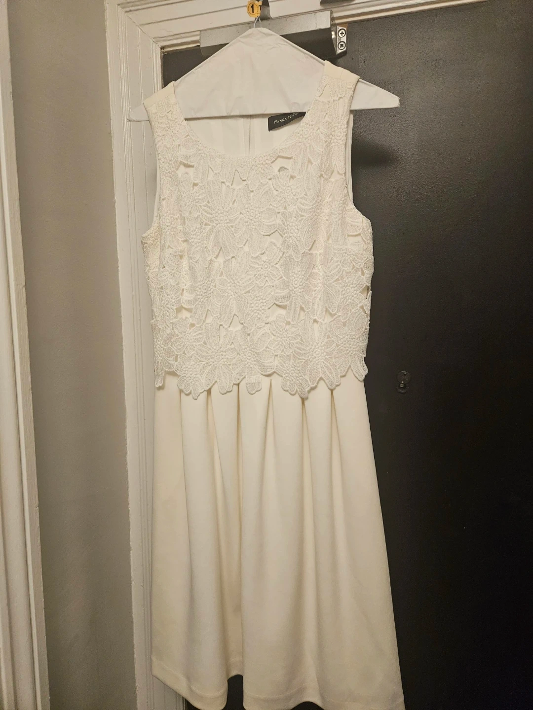 76Little white dress worn once. It's been dry cleaned and ready to be worn.