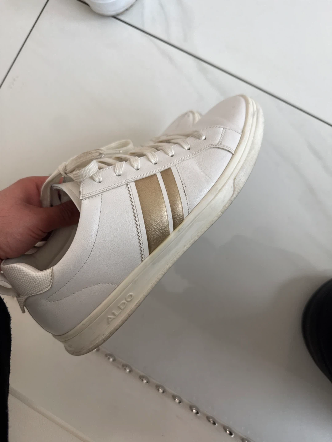 White ALDO Sneakers with Gold Stripes