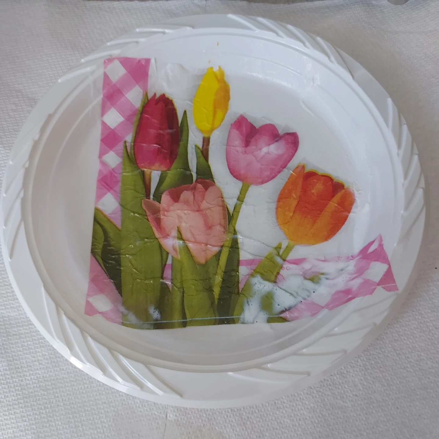 Includes a variety of designs: succulents, tulips, Easter bunny, floral, and a beach scene. These plates are not disposable, they are better as trays for jewellery or to hang up on the wall, since they are pieces of artwork. Hand wash only. Six plates at $5 each.